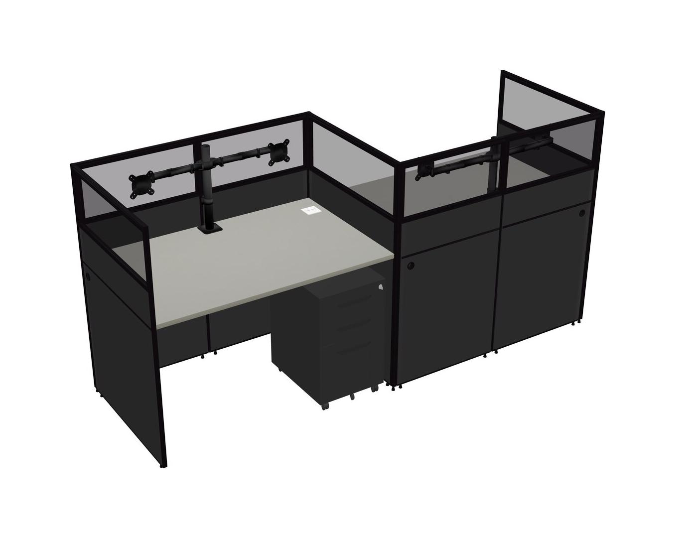 Grey Shadows Rectangular Cubicle Workstations For 2 - Zigzag Formation + Black Metal Mobile Drawers
