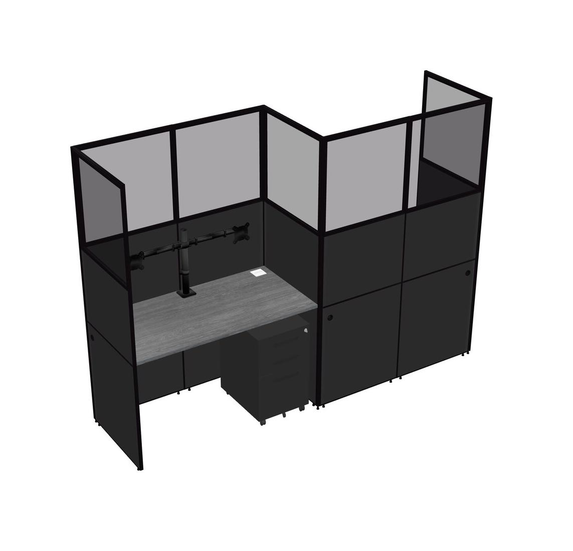 Grey Rectangular Cubicle Workstations For 2 - Zigzag Formation + Black Metal Mobile Drawers
