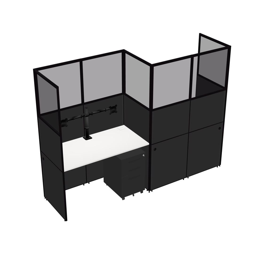 White Rectangular Cubicle Workstations For 2 - Zigzag Formation + Black Metal Mobile Drawers