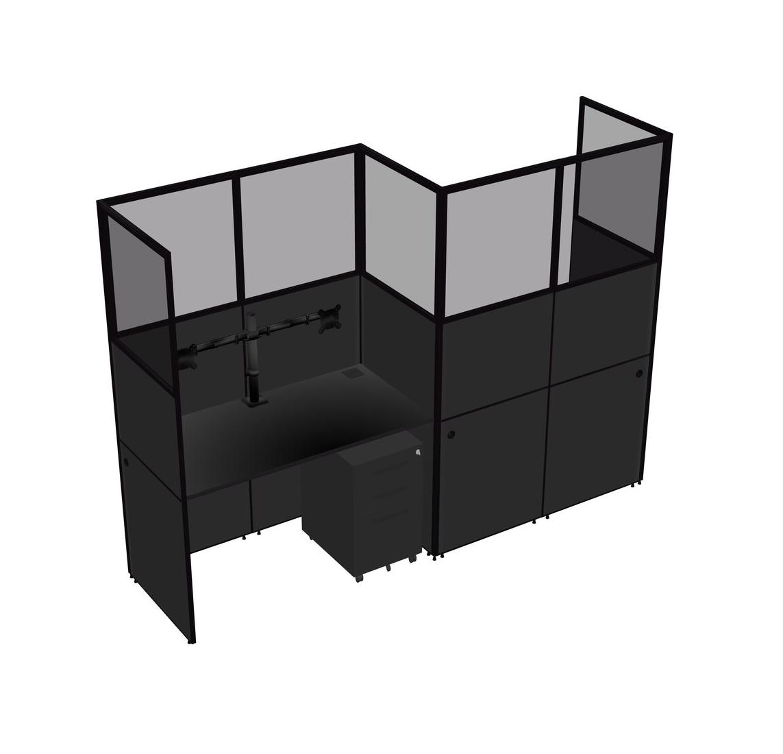 Black Rectangular Cubicle Workstations For 2 - Zigzag Formation + Black Metal Mobile Drawers
