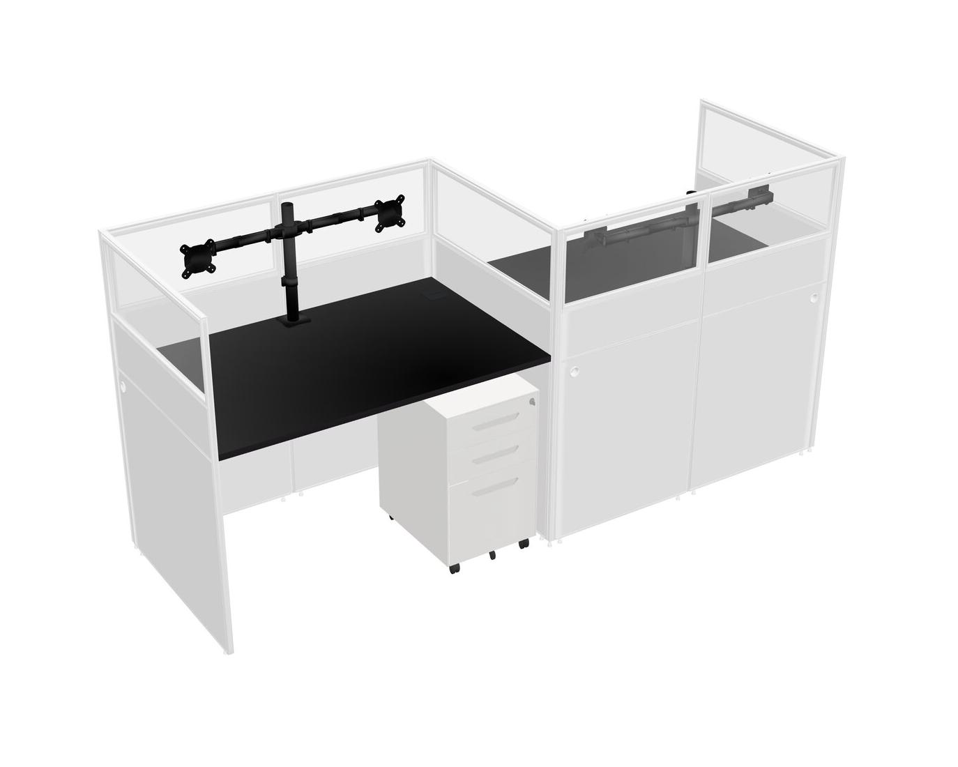 Black Rectangular Cubicle Workstations For 2 - Zigzag Formation + White Metal Mobile Drawers