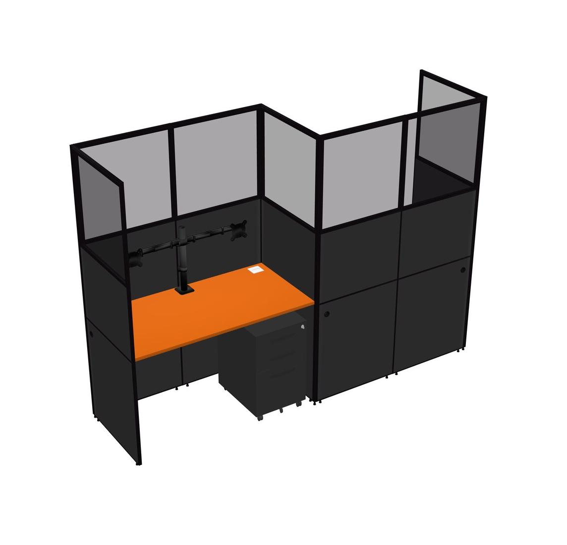 Orange Rectangular Cubicle Workstations For 2 - Zigzag Formation + Black Metal Mobile Drawers