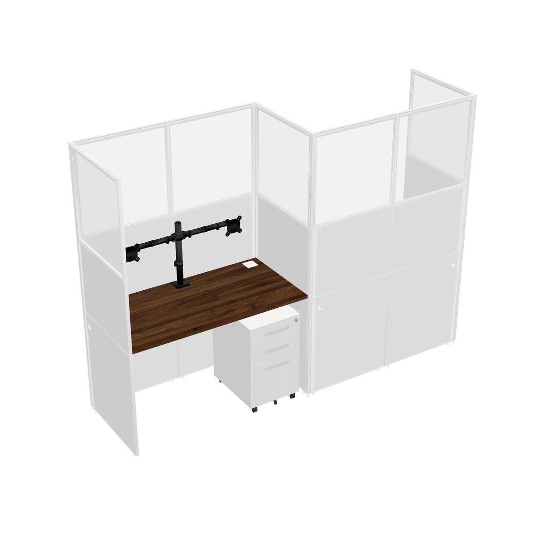 Columbia Walnut Rectangular Cubicle Workstations For 2 - Zigzag Formation + White Metal Mobile Drawers