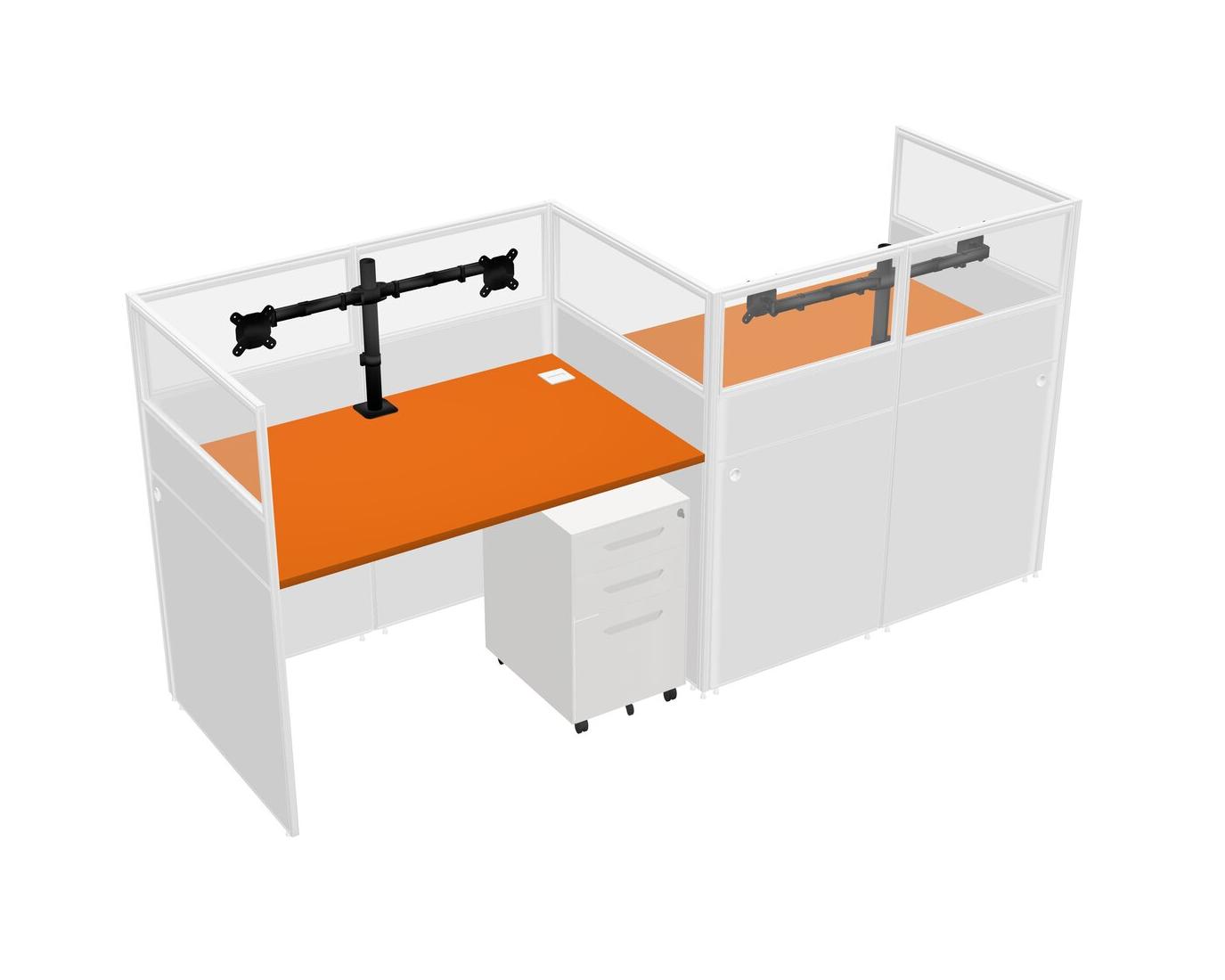 Orange Rectangular Cubicle Workstations For 2 - Zigzag Formation + White Metal Mobile Drawers