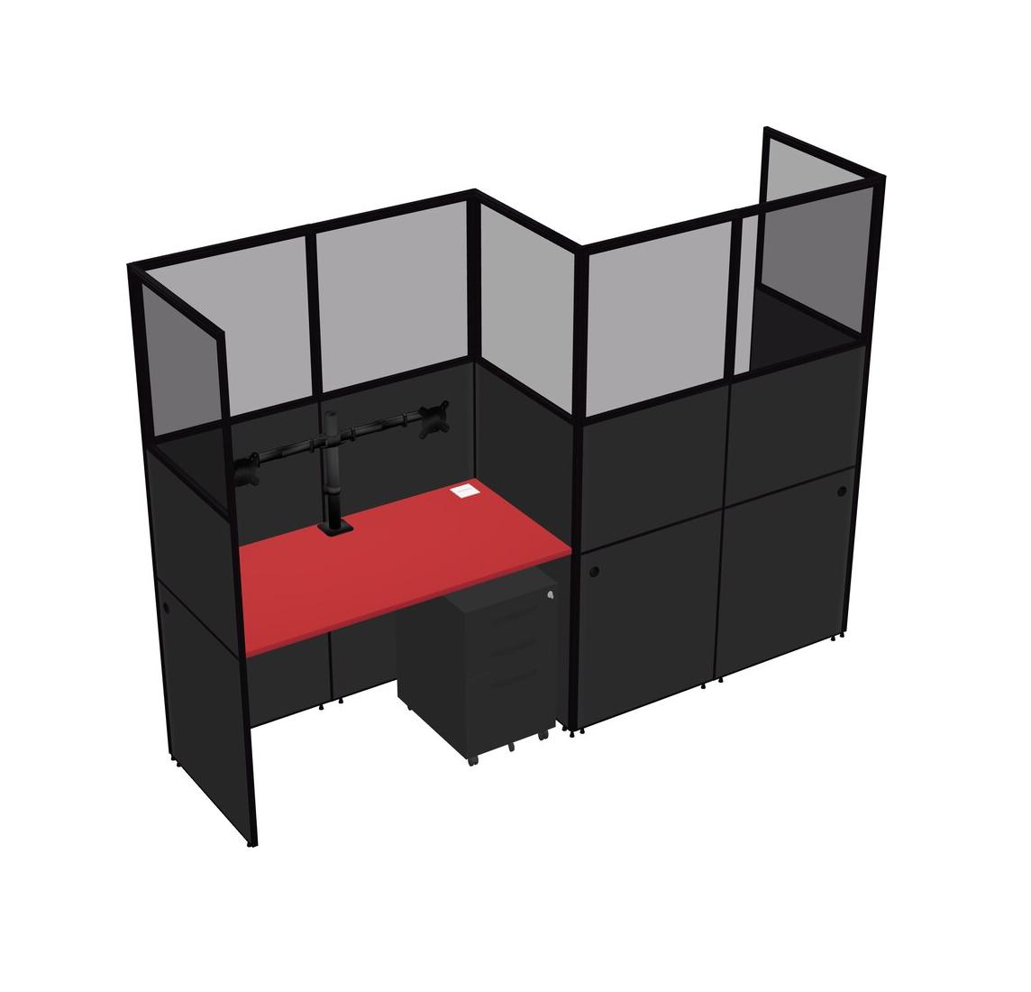 Prism Red Rectangular Cubicle Workstations For 2 - Zigzag Formation + Black Metal Mobile Drawers