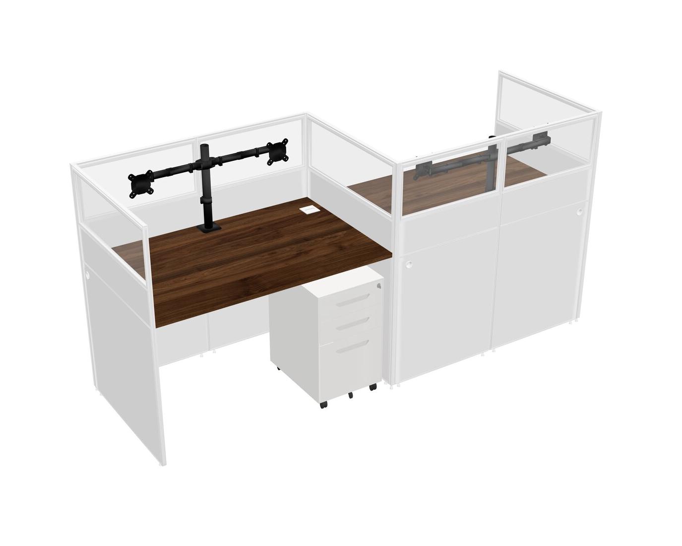 Columbia Walnut Rectangular Cubicle Workstations For 2 - Zigzag Formation + White Metal Mobile Drawers