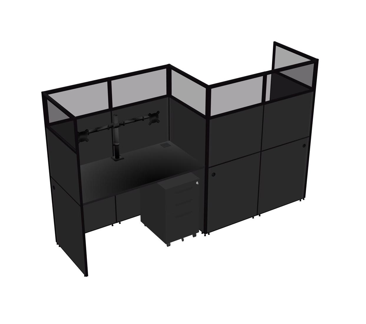 Black Rectangular Cubicle Workstations For 2 - Zigzag Formation + Black Metal Mobile Drawers