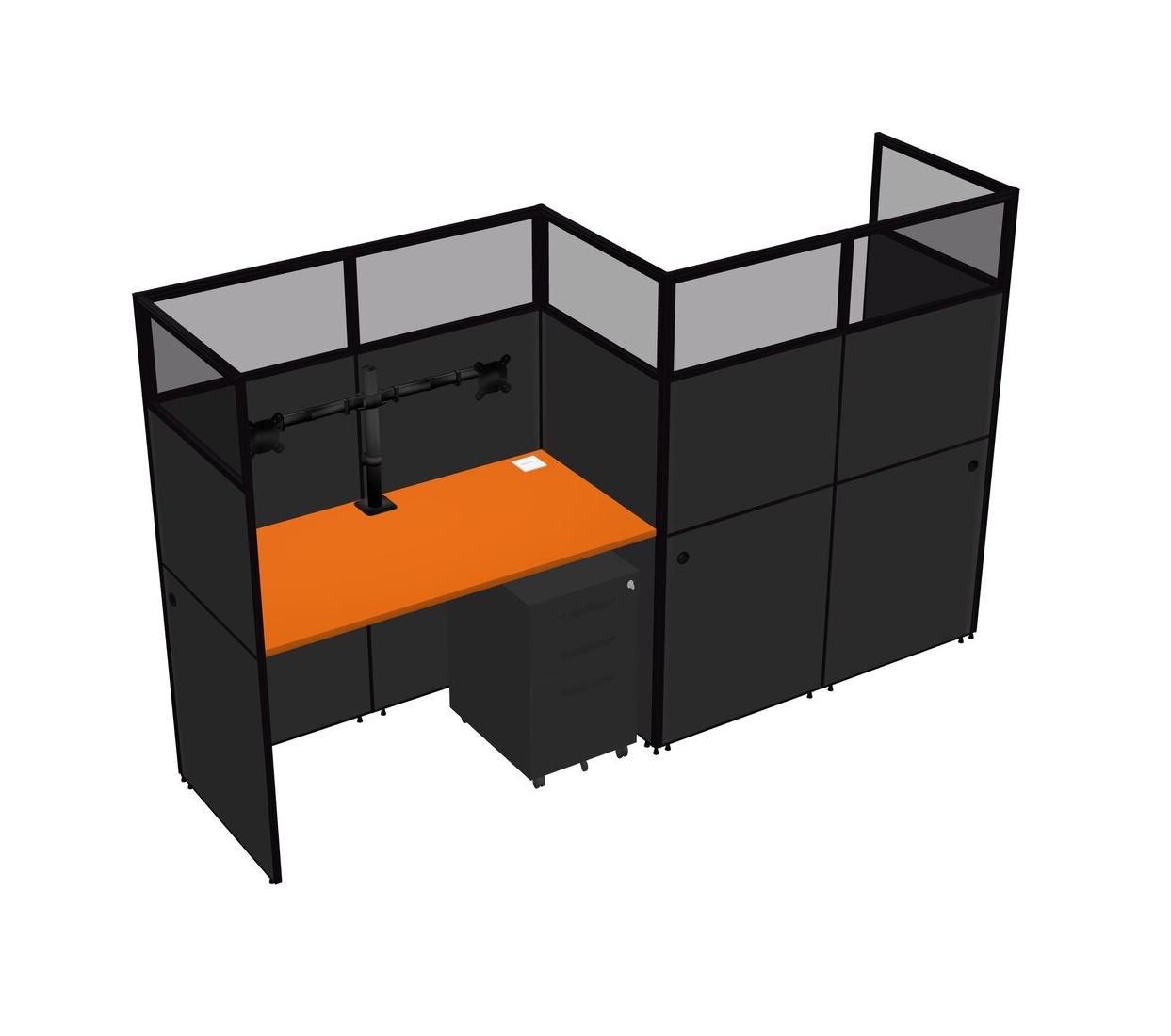Orange Rectangular Cubicle Workstations For 2 - Zigzag Formation + Black Metal Mobile Drawers