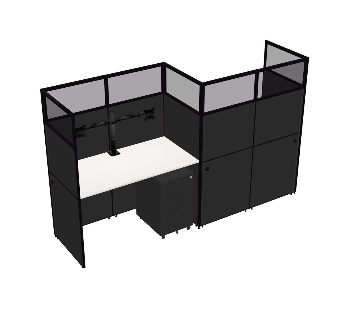 White Rectangular Cubicle Workstations For 2 - Zigzag Formation + Black Metal Mobile Drawers