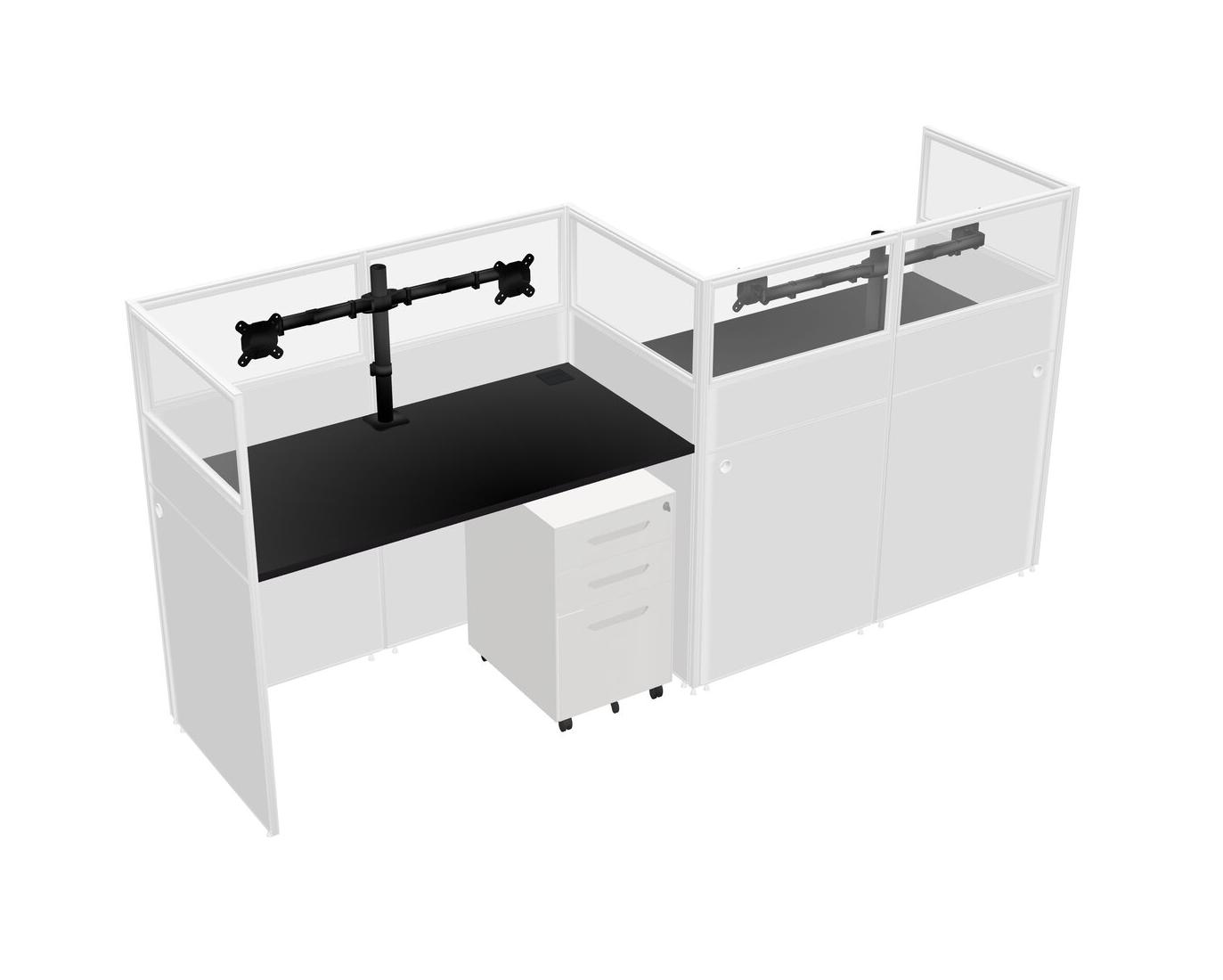 Black Rectangular Cubicle Workstations For 2 - Zigzag Formation + White Metal Mobile Drawers