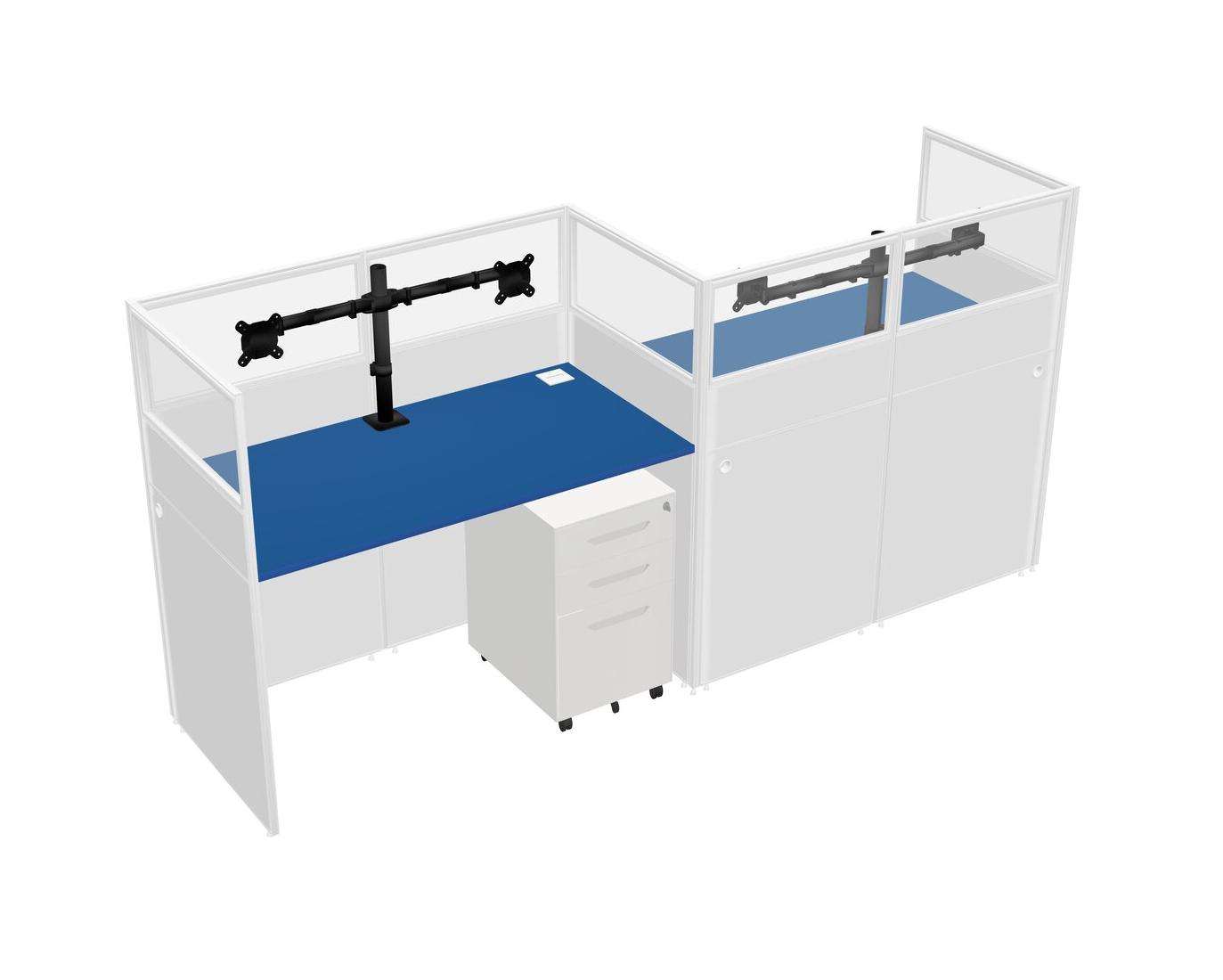 Prism Blue Rectangular Cubicle Workstations For 2 - Zigzag Formation + White Metal Mobile Drawers
