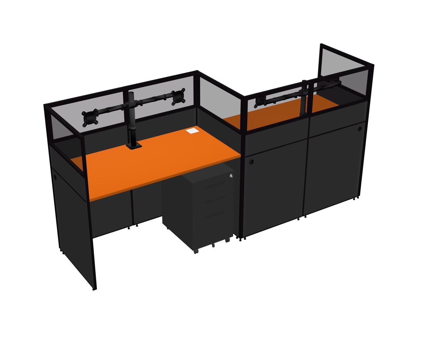 Orange Rectangular Cubicle Workstations For 2 - Zigzag Formation + Black Metal Mobile Drawers