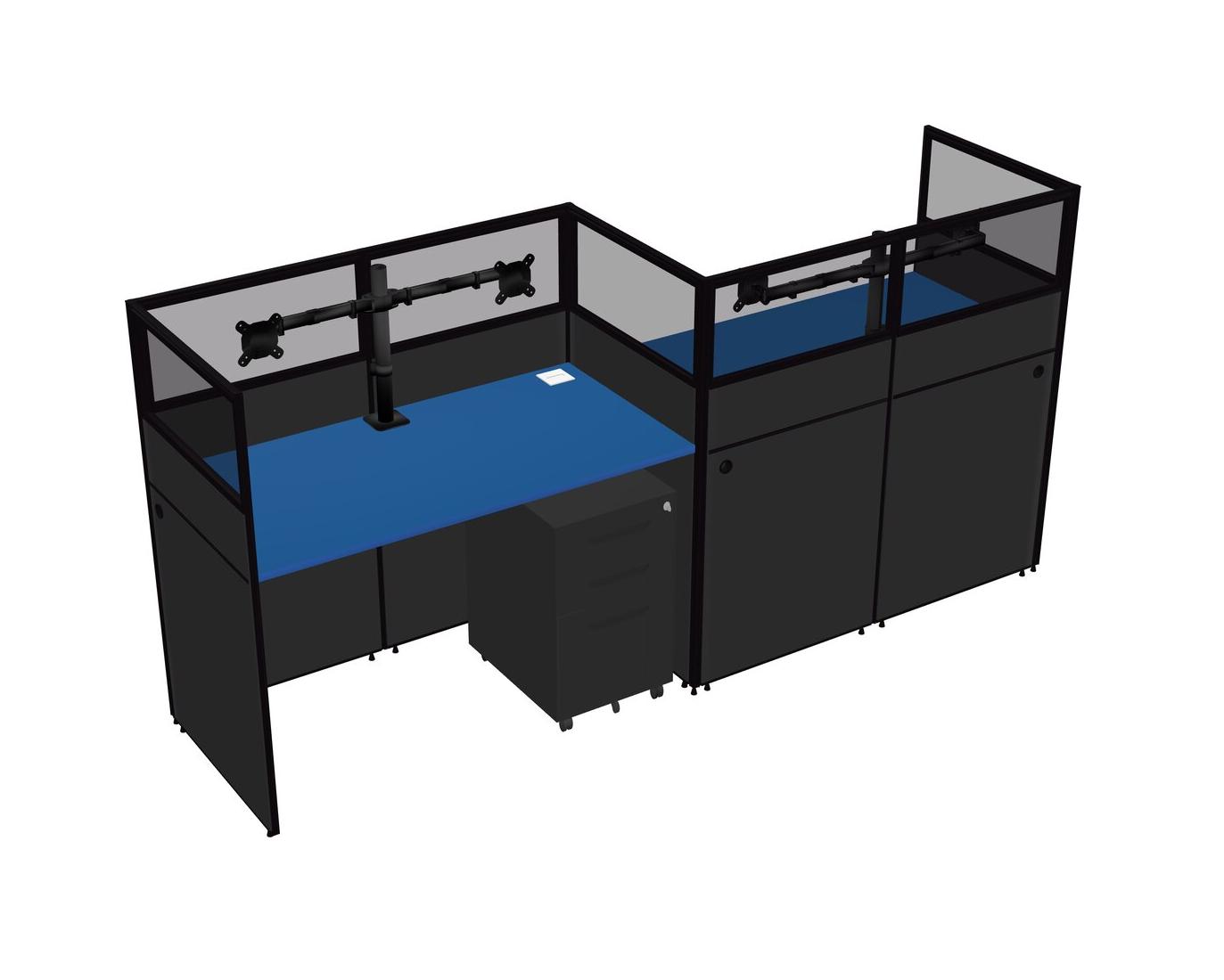 Prism Blue Rectangular Cubicle Workstations For 2 - Zigzag Formation + Black Metal Mobile Drawers