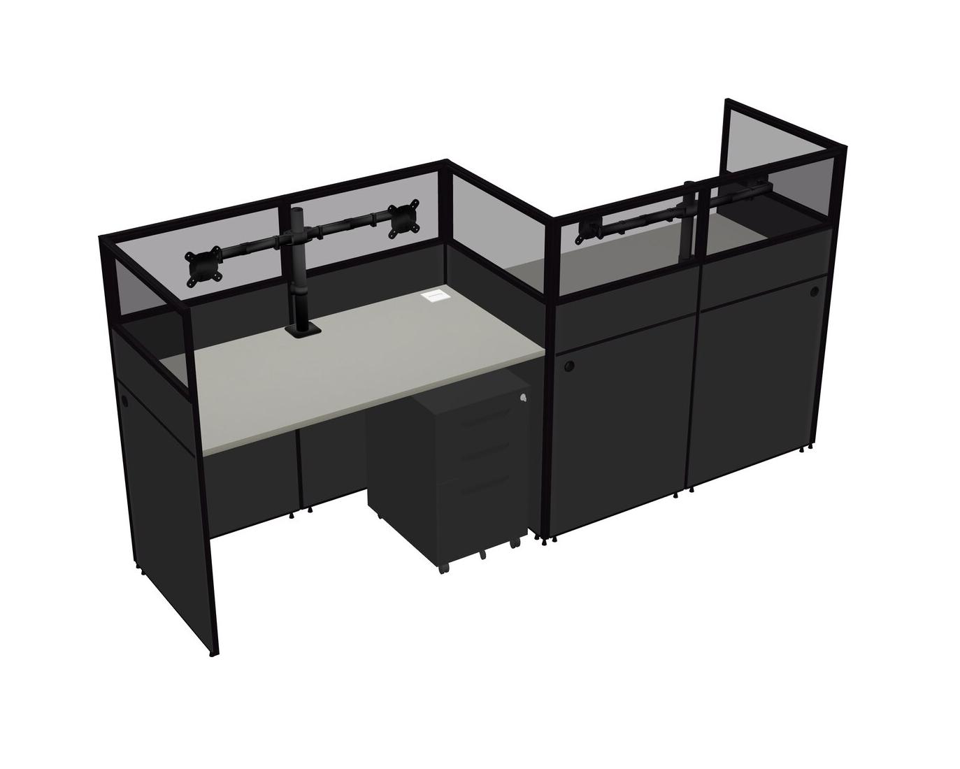 Grey Shadows Rectangular Cubicle Workstations For 2 - Zigzag Formation + Black Metal Mobile Drawers