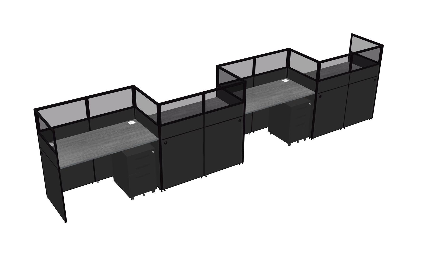 Grey Rectangular Cubicle Workstations For 4 - Zigzag Formation + Black Metal Mobile Drawers