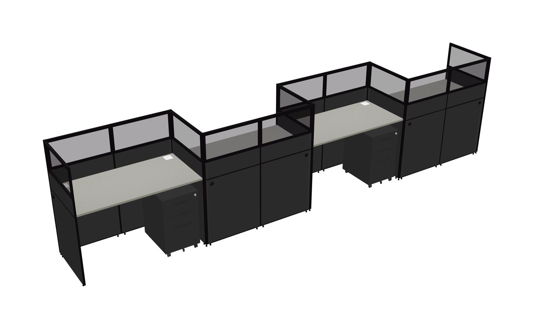 Grey Shadows Rectangular Cubicle Workstations For 4 - Zigzag Formation + Black Metal Mobile Drawers