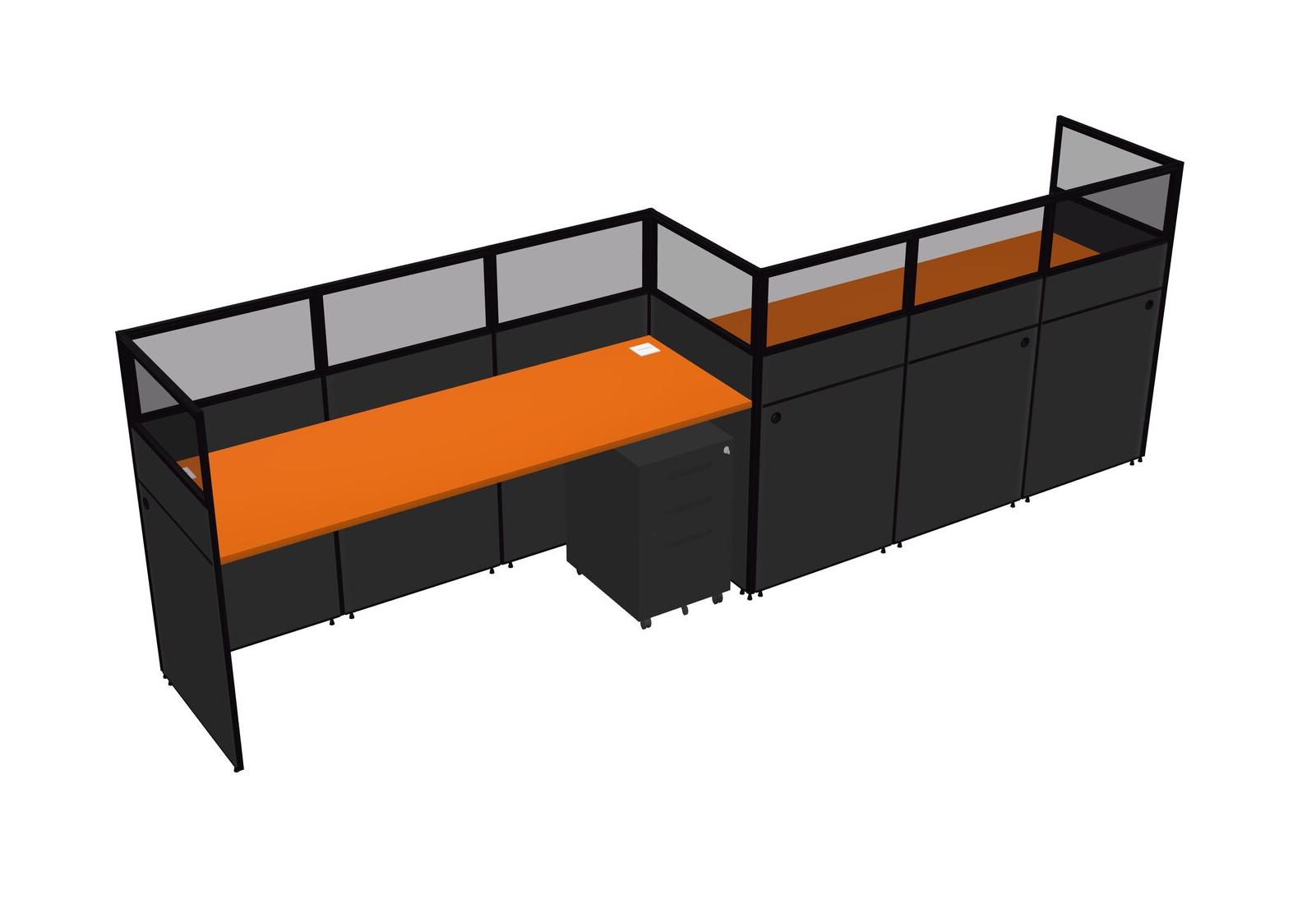 Orange Rectangular Cubicle Workstations For 2 - Zigzag Formation + Black Metal Mobile Drawers