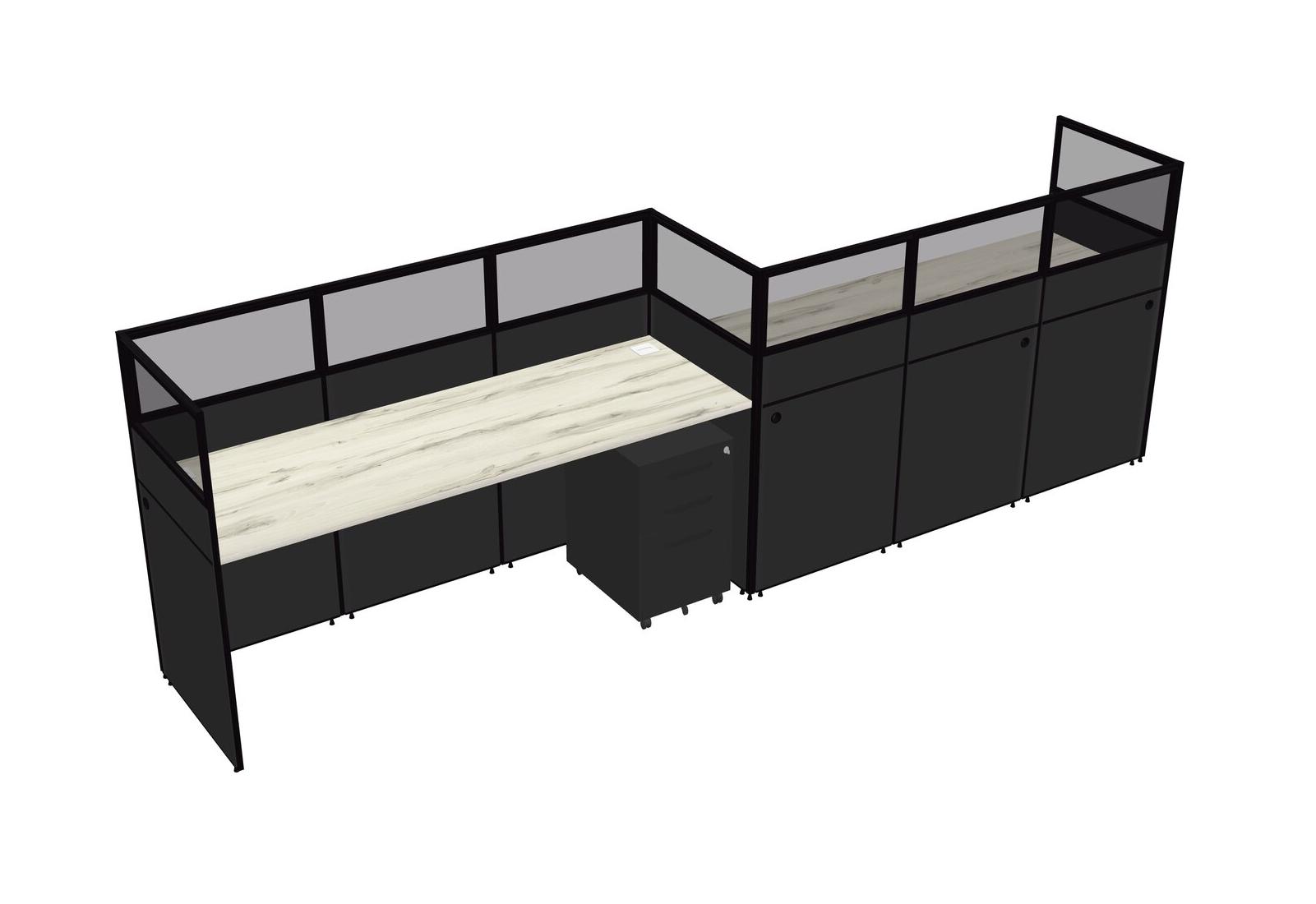 Heinne Holz Rectangular Cubicle Workstations For 2 - Zigzag Formation + Black Metal Mobile Drawers