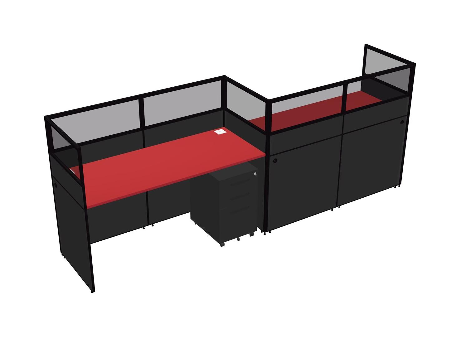 Prism Red Rectangular Cubicle Workstations For 2 - Zigzag Formation + Black Metal Mobile Drawers