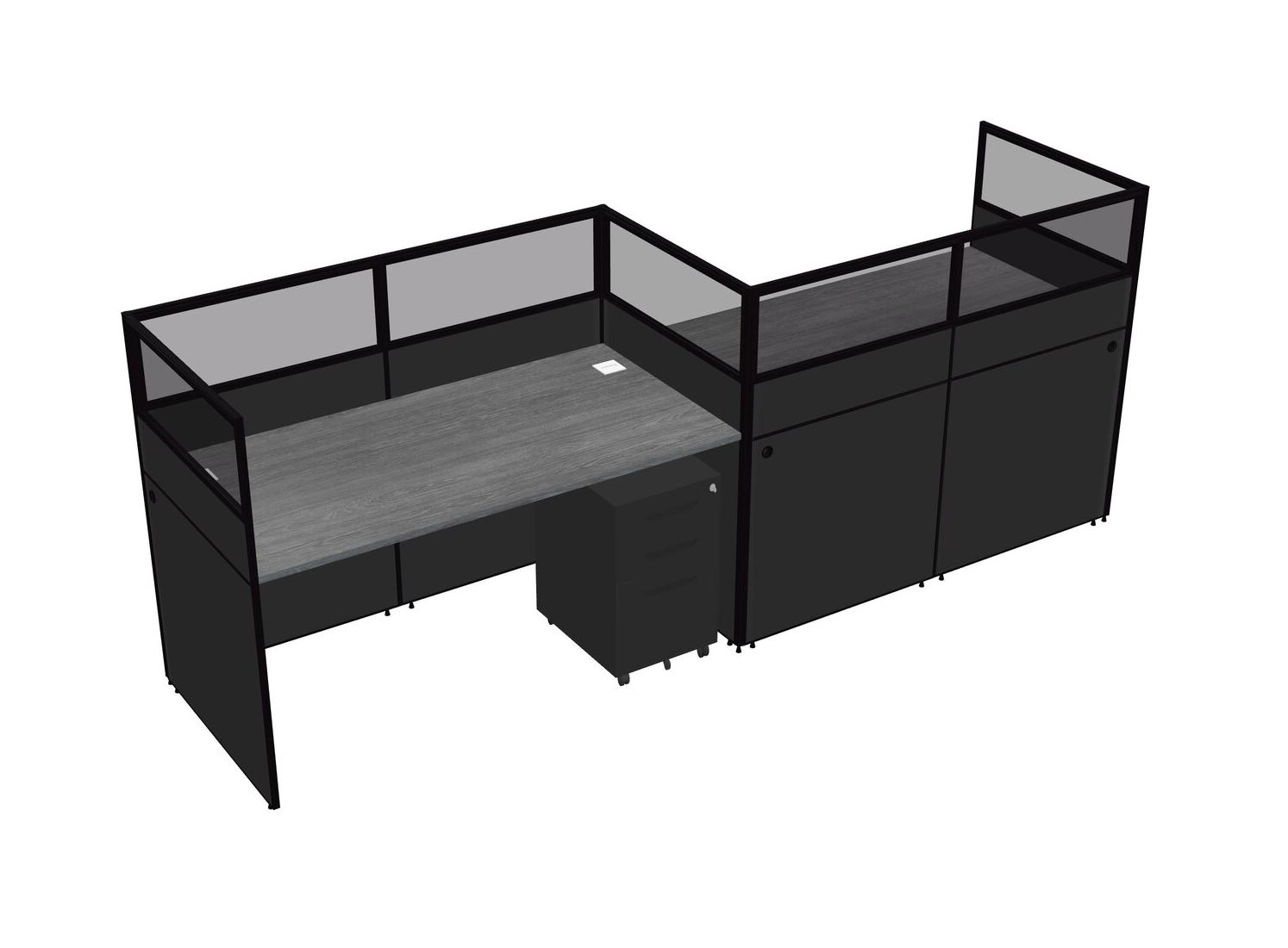 Grey Rectangular Cubicle Workstations For 2 - Zigzag Formation + Black Metal Mobile Drawers