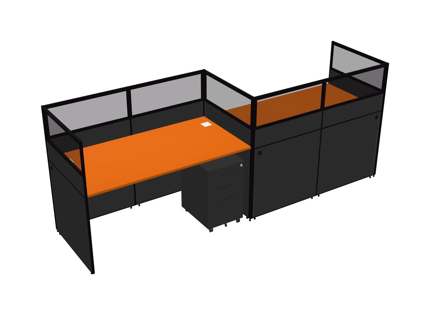 Orange Rectangular Cubicle Workstations For 2 - Zigzag Formation + Black Metal Mobile Drawers
