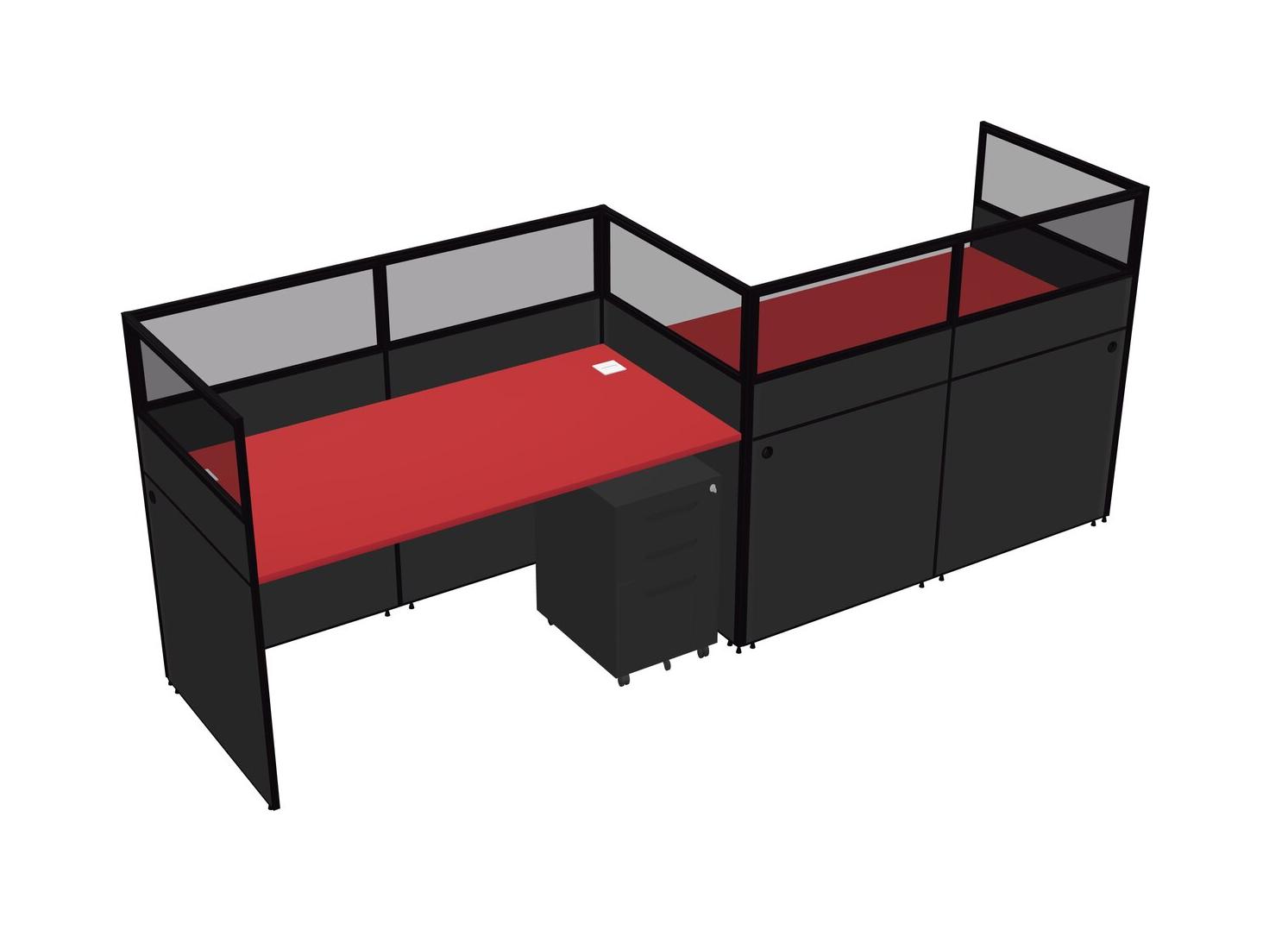 Prism Red Rectangular Cubicle Workstations For 2 - Zigzag Formation + Black Metal Mobile Drawers