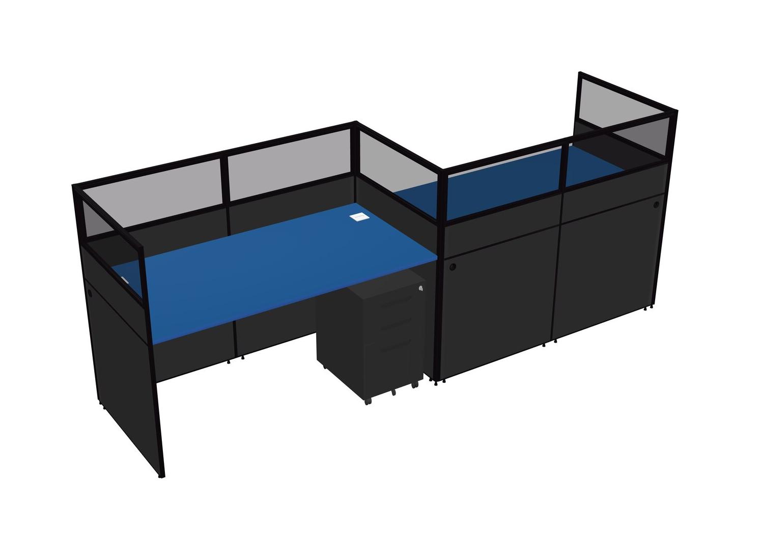 Prism Blue Rectangular Cubicle Workstations For 2 - Zigzag Formation + Black Metal Mobile Drawers