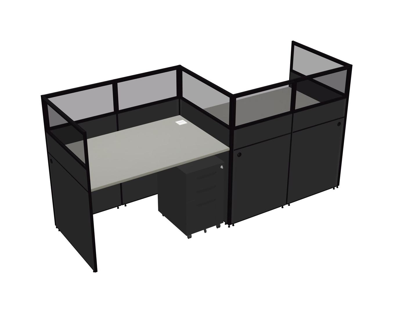 Grey Shadows Rectangular Cubicle Workstations For 2 - Zigzag Formation + Black Metal Mobile Drawers