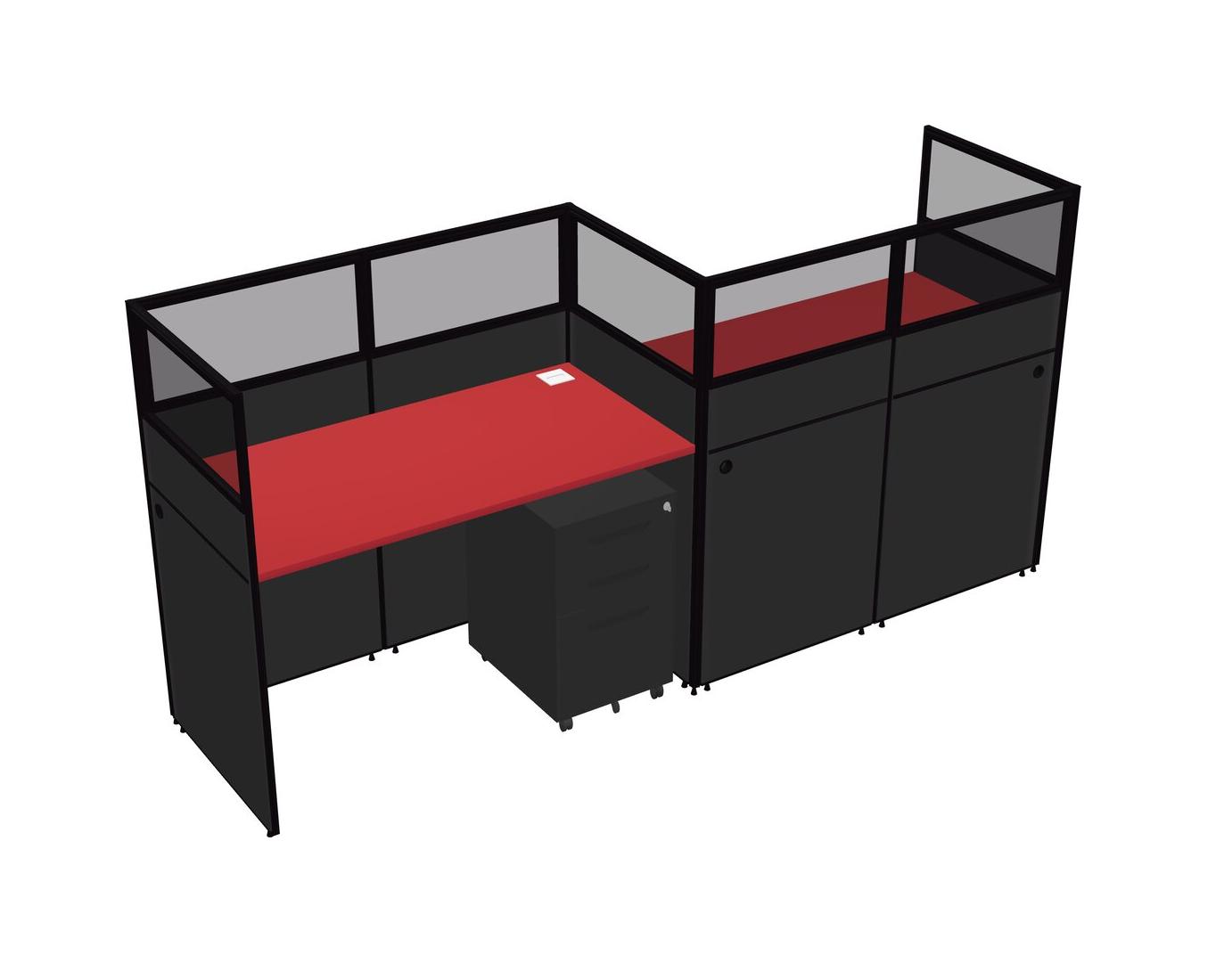 Prism Red Rectangular Cubicle Workstations For 2 - Zigzag Formation + Black Metal Mobile Drawers