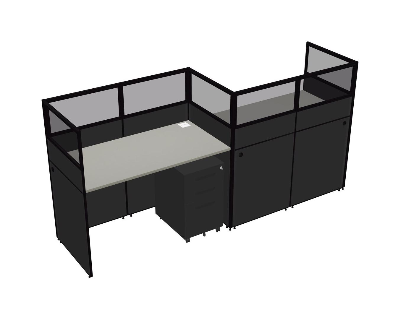 Grey Shadows Rectangular Cubicle Workstations For 2 - Zigzag Formation + Black Metal Mobile Drawers