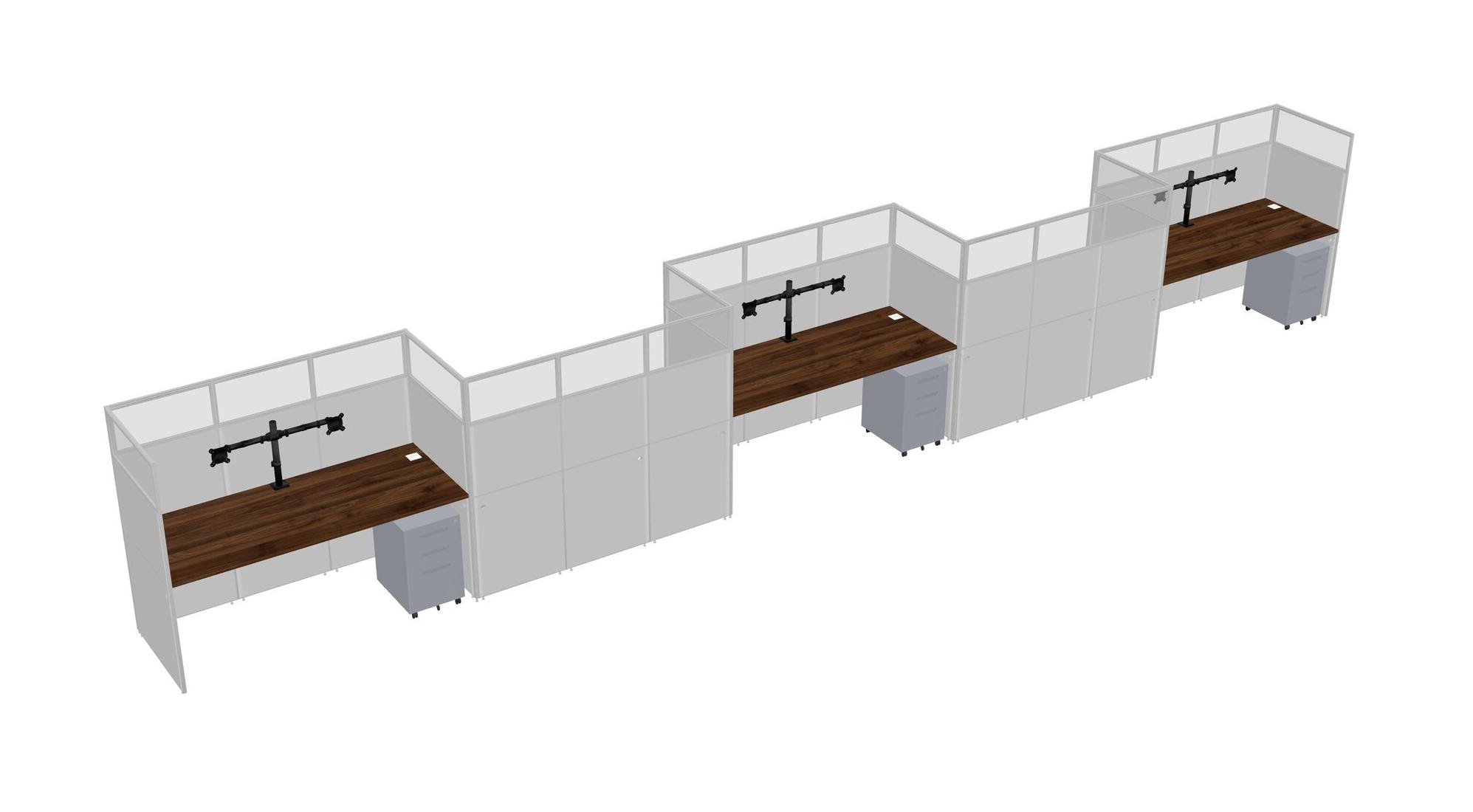 Columbia Walnut Rectangular Cubicle Workstations For 5 - Zigzag Formation + Grey Metal Mobile Drawers