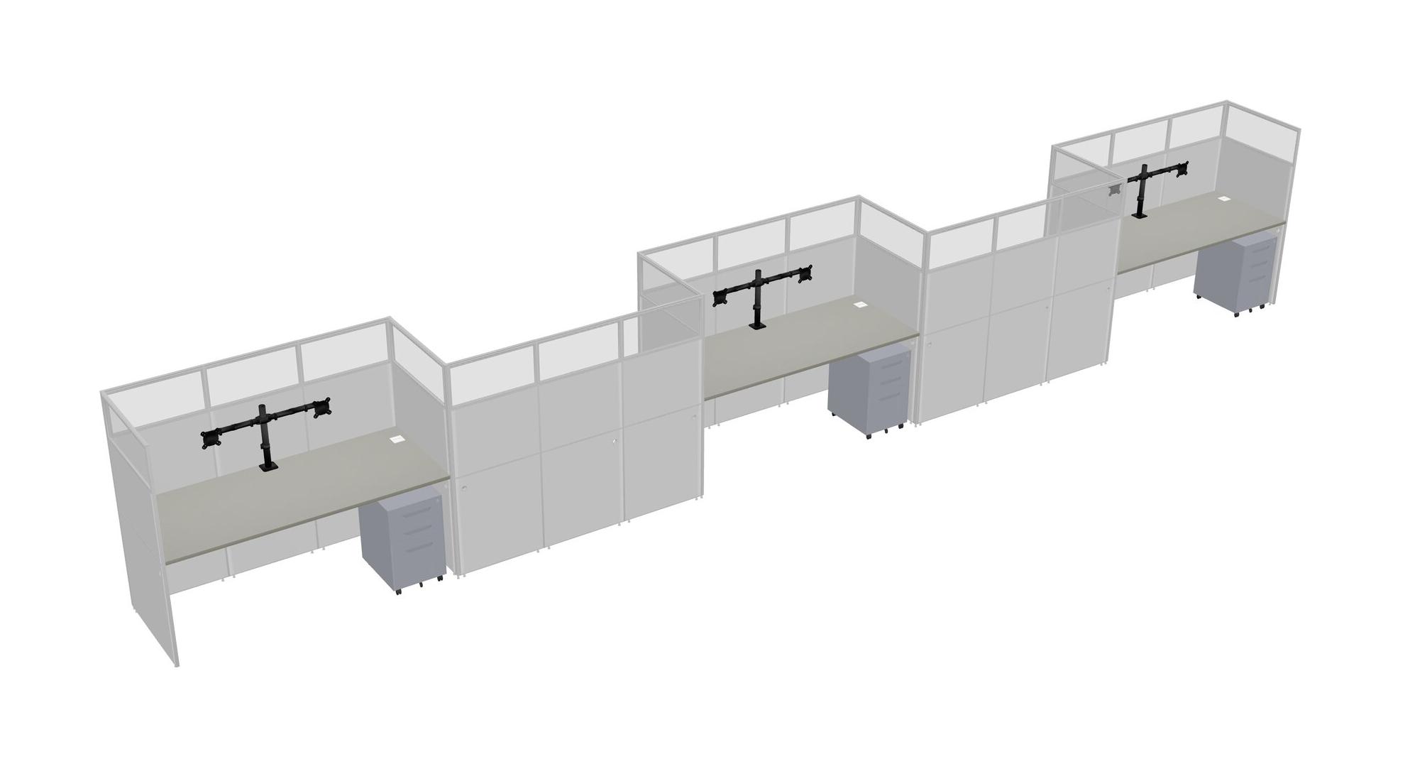 Grey Shadows Rectangular Cubicle Workstations For 5 - Zigzag Formation + Grey Metal Mobile Drawers