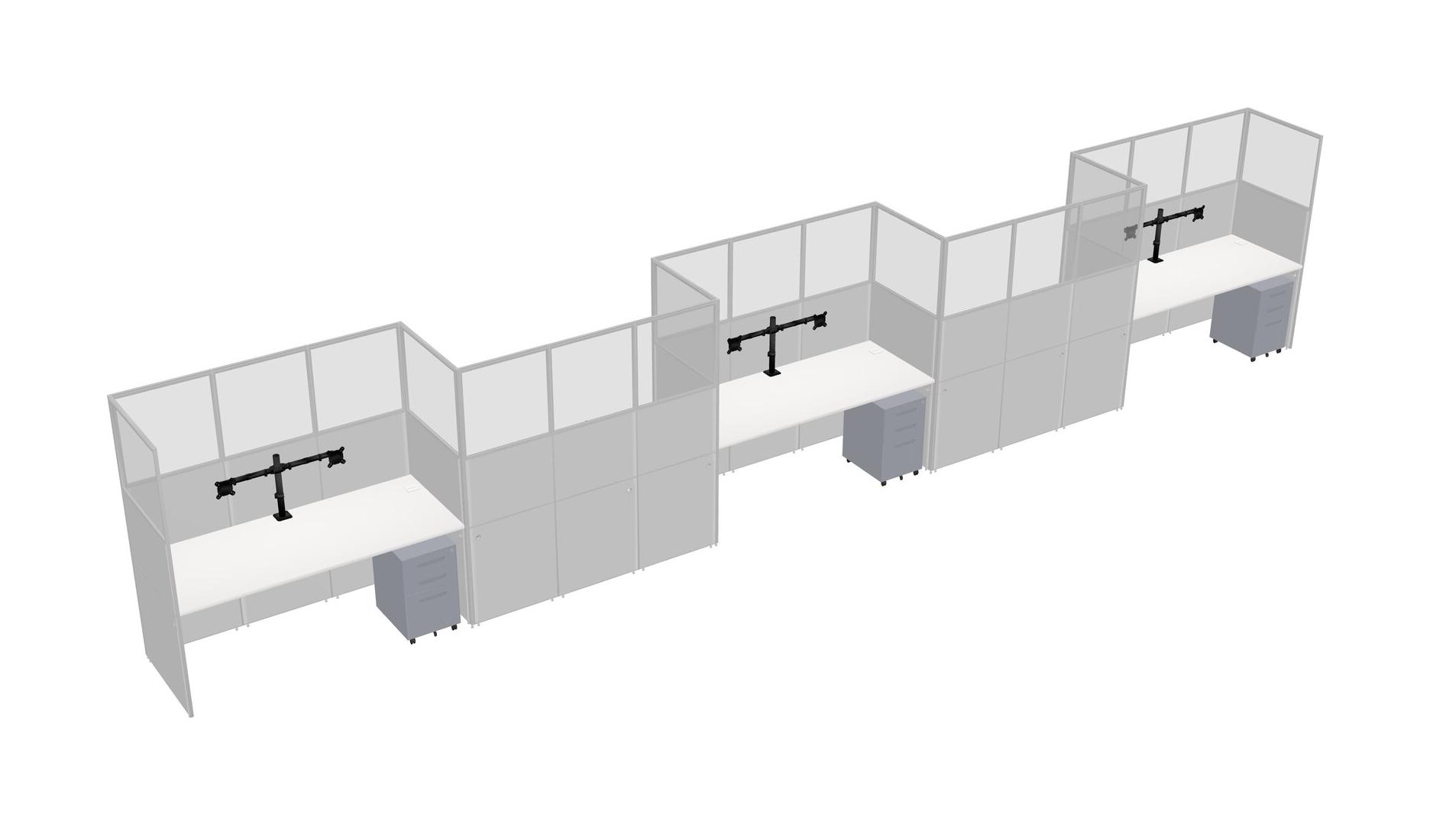 White Rectangular Cubicle Workstations For 5 - Zigzag Formation + Grey Metal Mobile Drawers