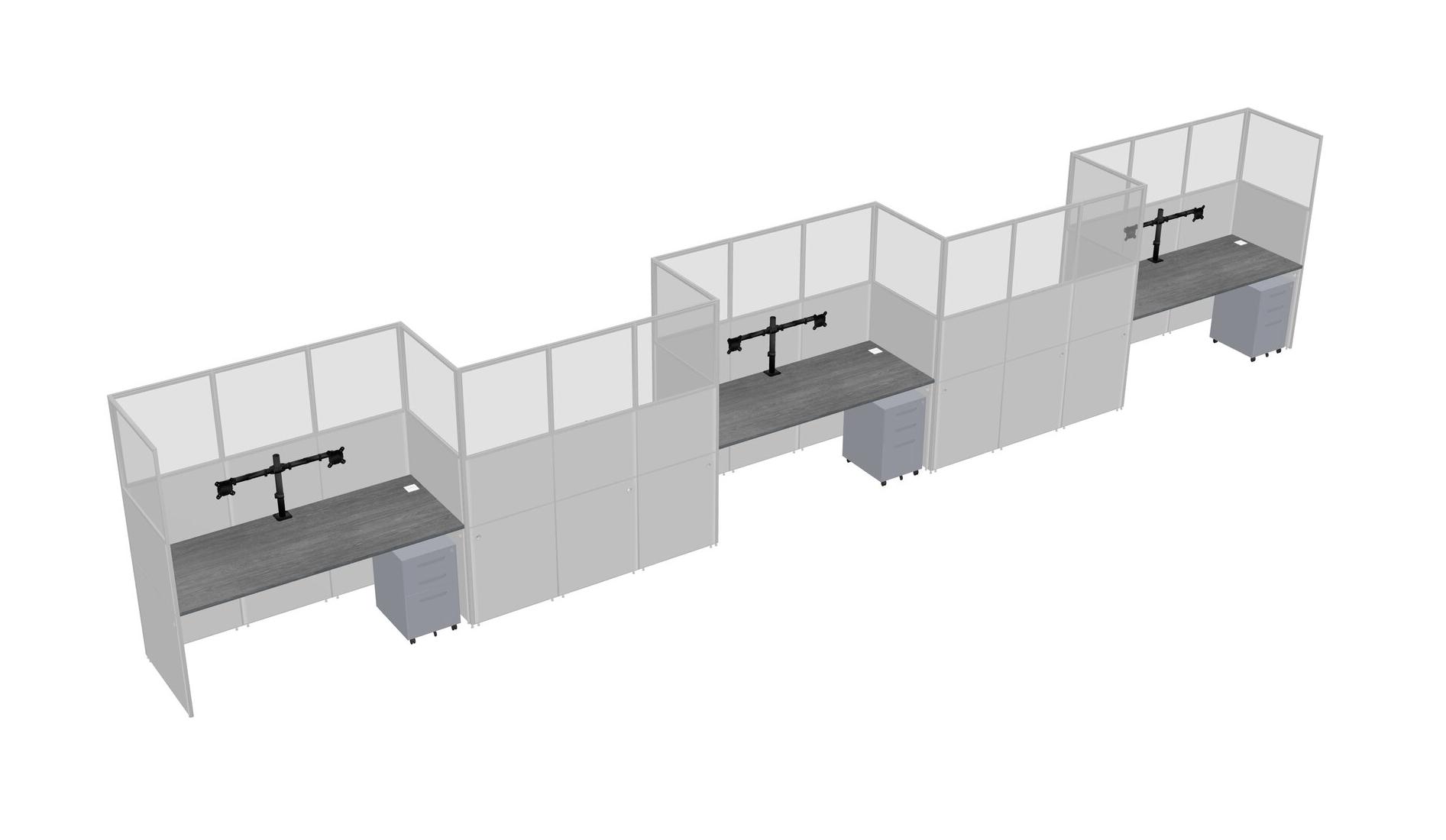 Grey Rectangular Cubicle Workstations For 5 - Zigzag Formation + Grey Metal Mobile Drawers