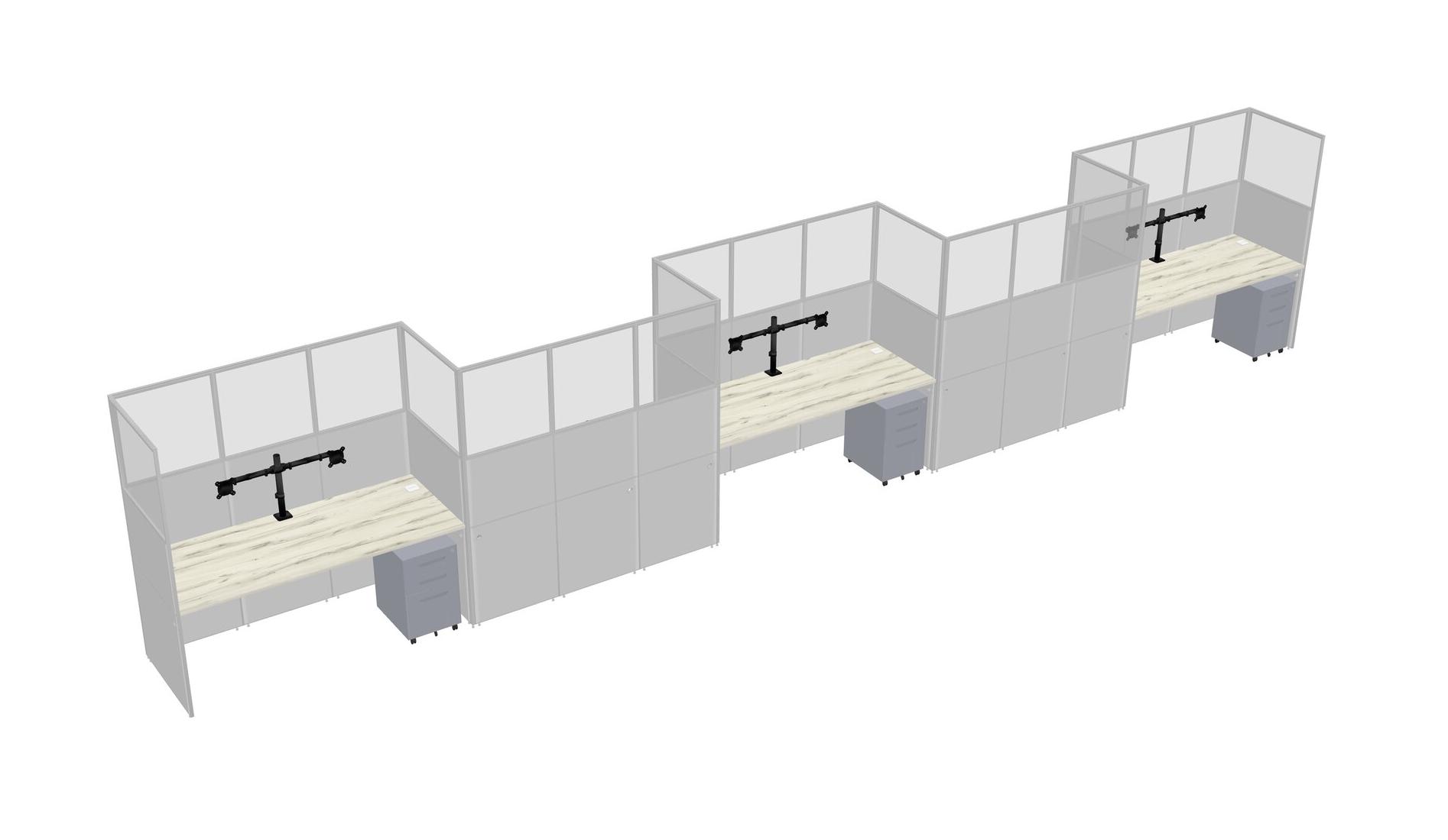 Heinne Holz Rectangular Cubicle Workstations For 5 - Zigzag Formation + Grey Metal Mobile Drawers