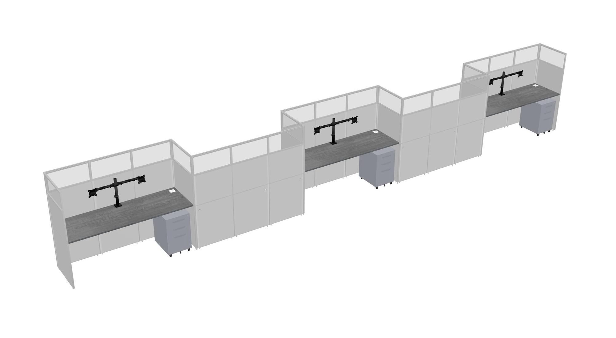 Grey Rectangular Cubicle Workstations For 5 - Zigzag Formation + Grey Metal Mobile Drawers
