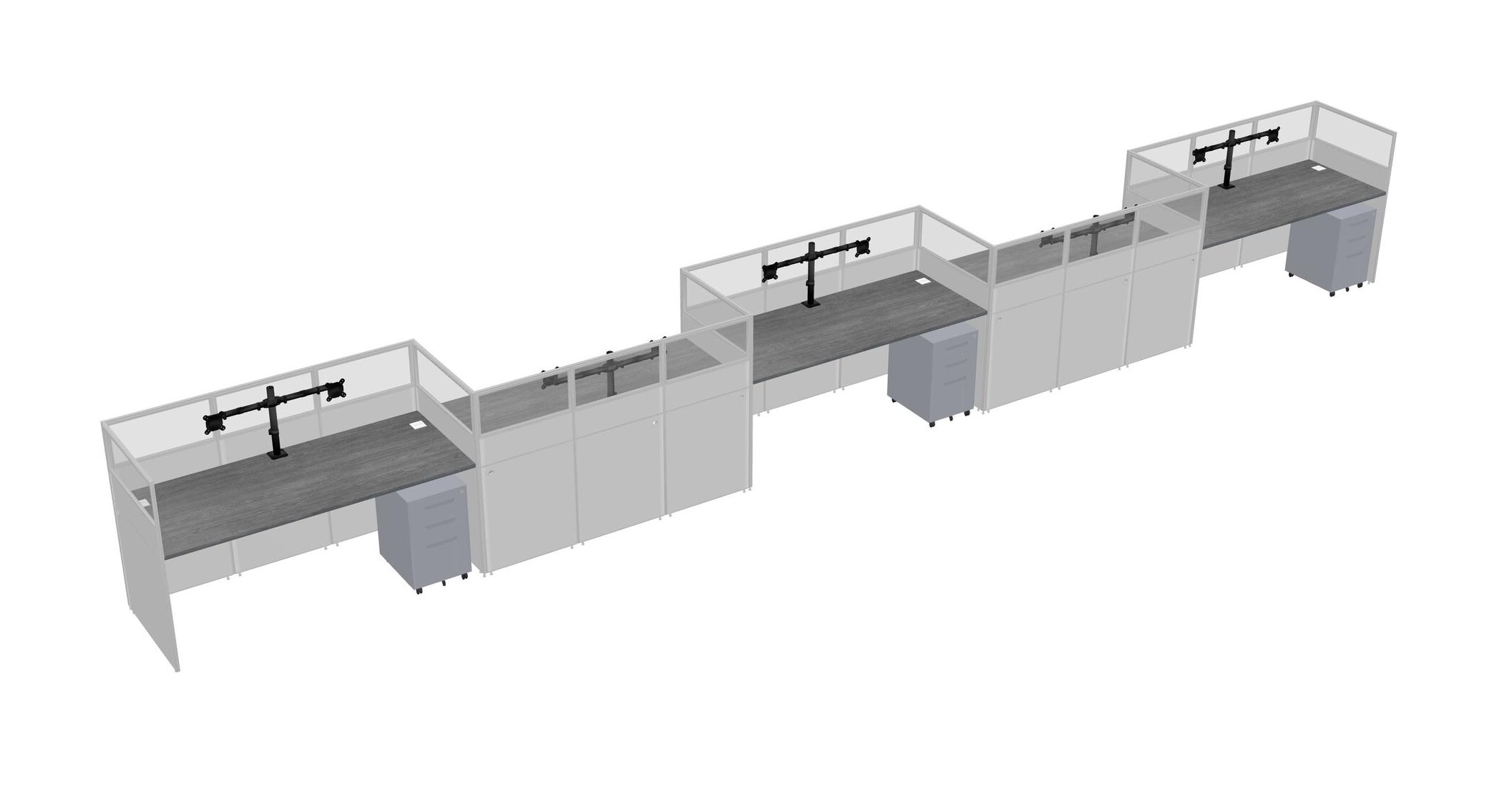 Grey Rectangular Cubicle Workstations For 5 - Zigzag Formation + Grey Metal Mobile Drawers