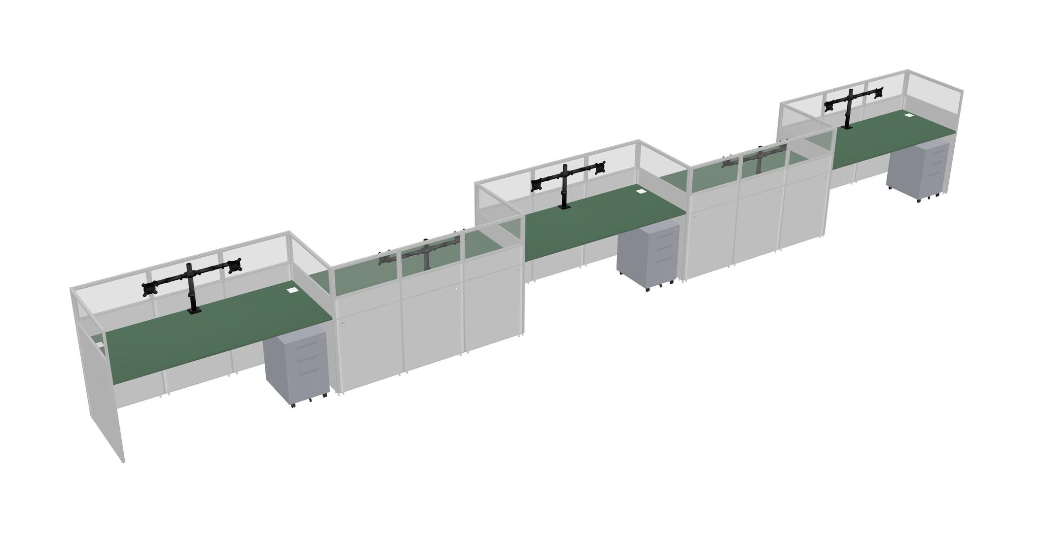 Green Rectangular Cubicle Workstations For 5 - Zigzag Formation + Grey Metal Mobile Drawers