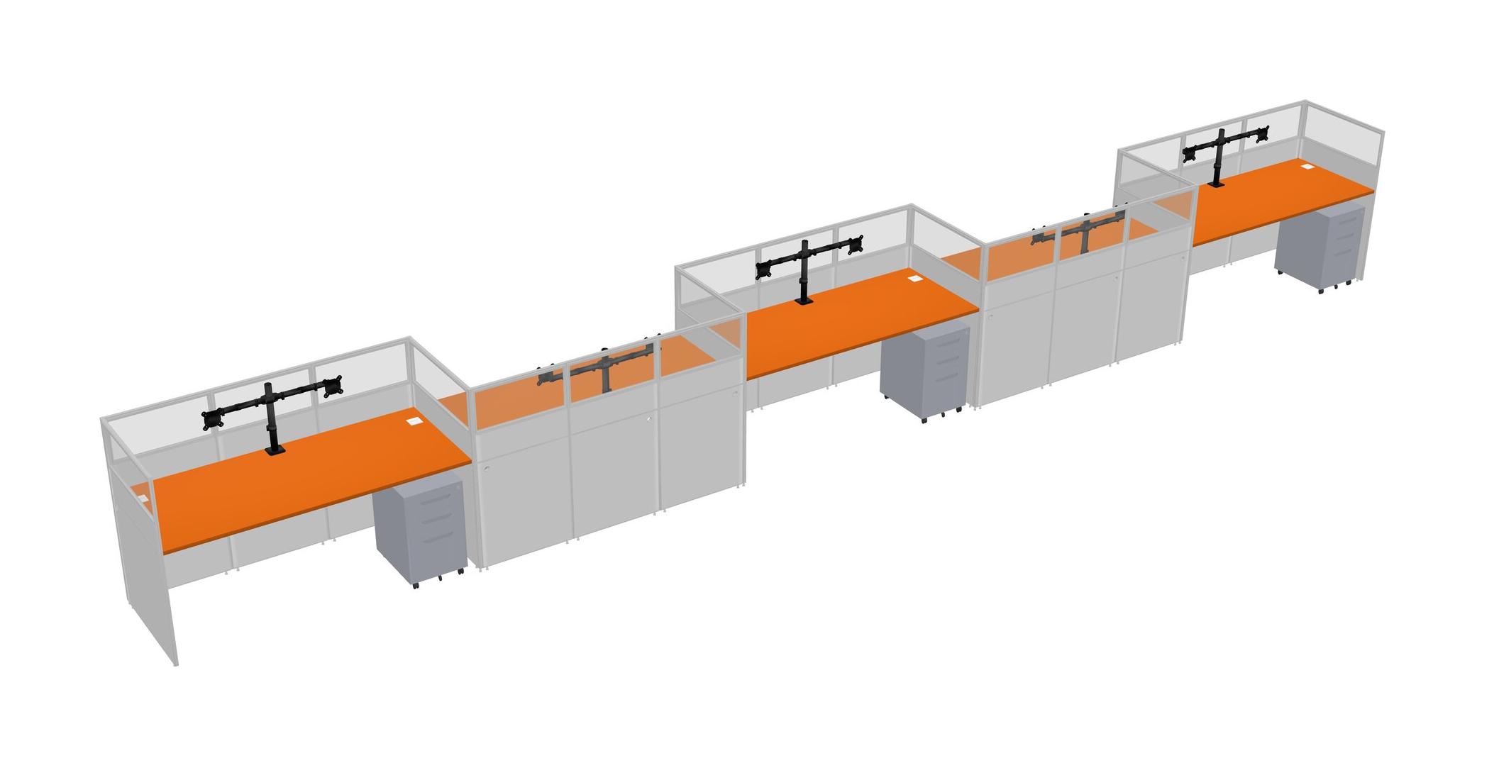 Orange Rectangular Cubicle Workstations For 5 - Zigzag Formation + Grey Metal Mobile Drawers