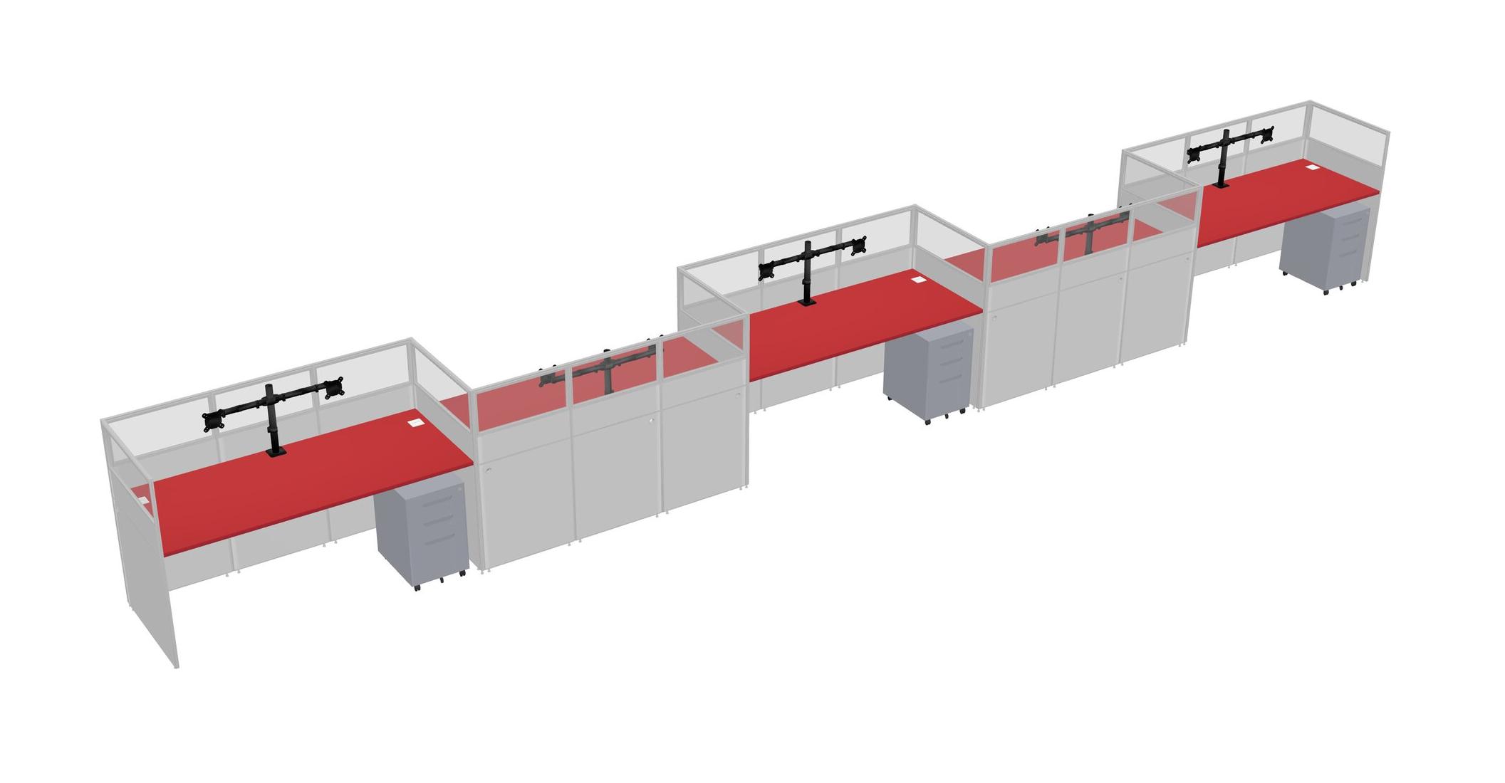 Prism Red Rectangular Cubicle Workstations For 5 - Zigzag Formation + Grey Metal Mobile Drawers