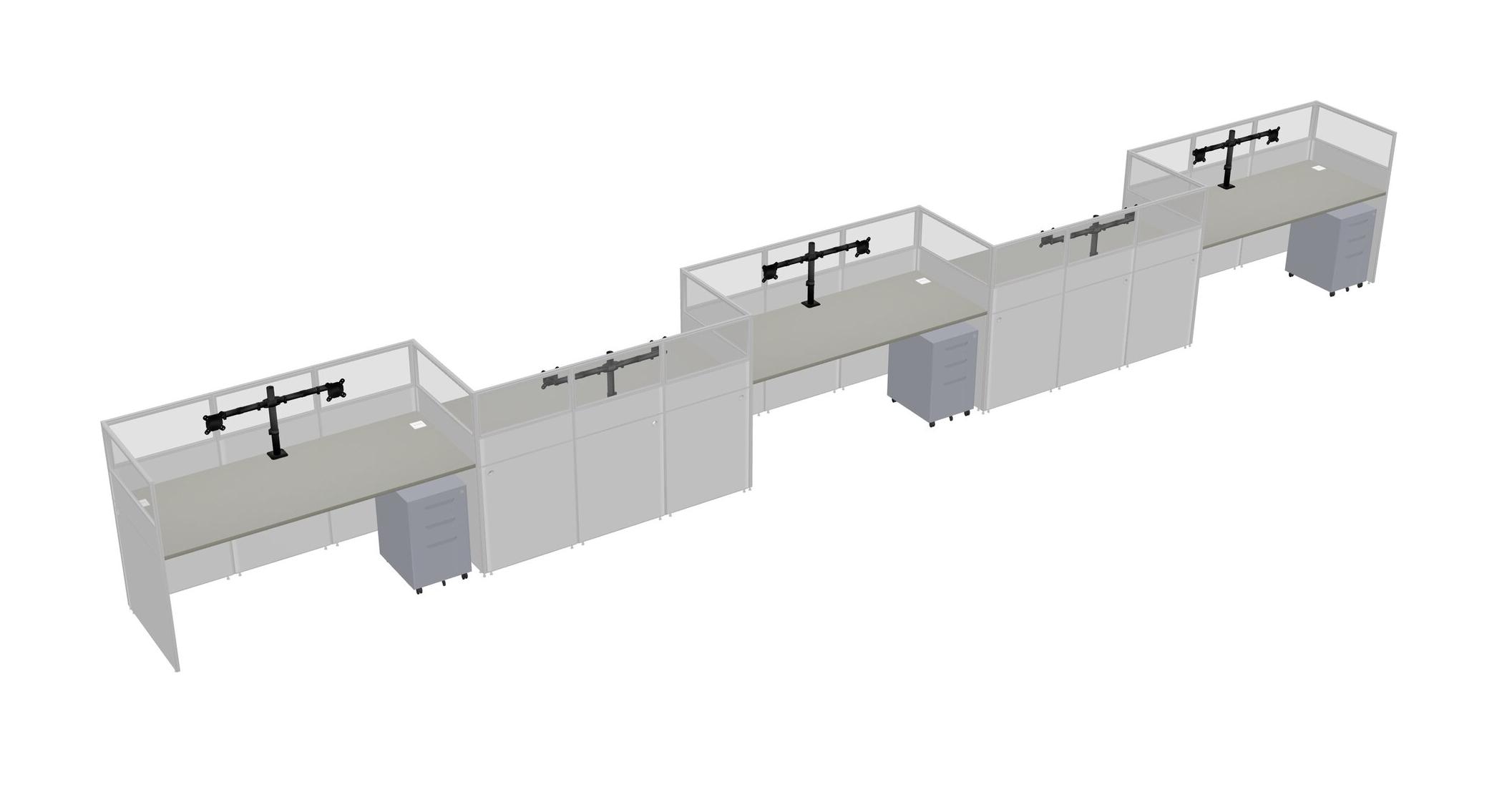 Grey Shadows Rectangular Cubicle Workstations For 5 - Zigzag Formation + Grey Metal Mobile Drawers