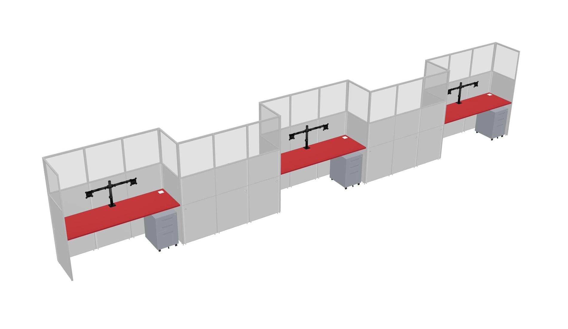 Prism Red Rectangular Cubicle Workstations For 5 - Zigzag Formation + Grey Metal Mobile Drawers