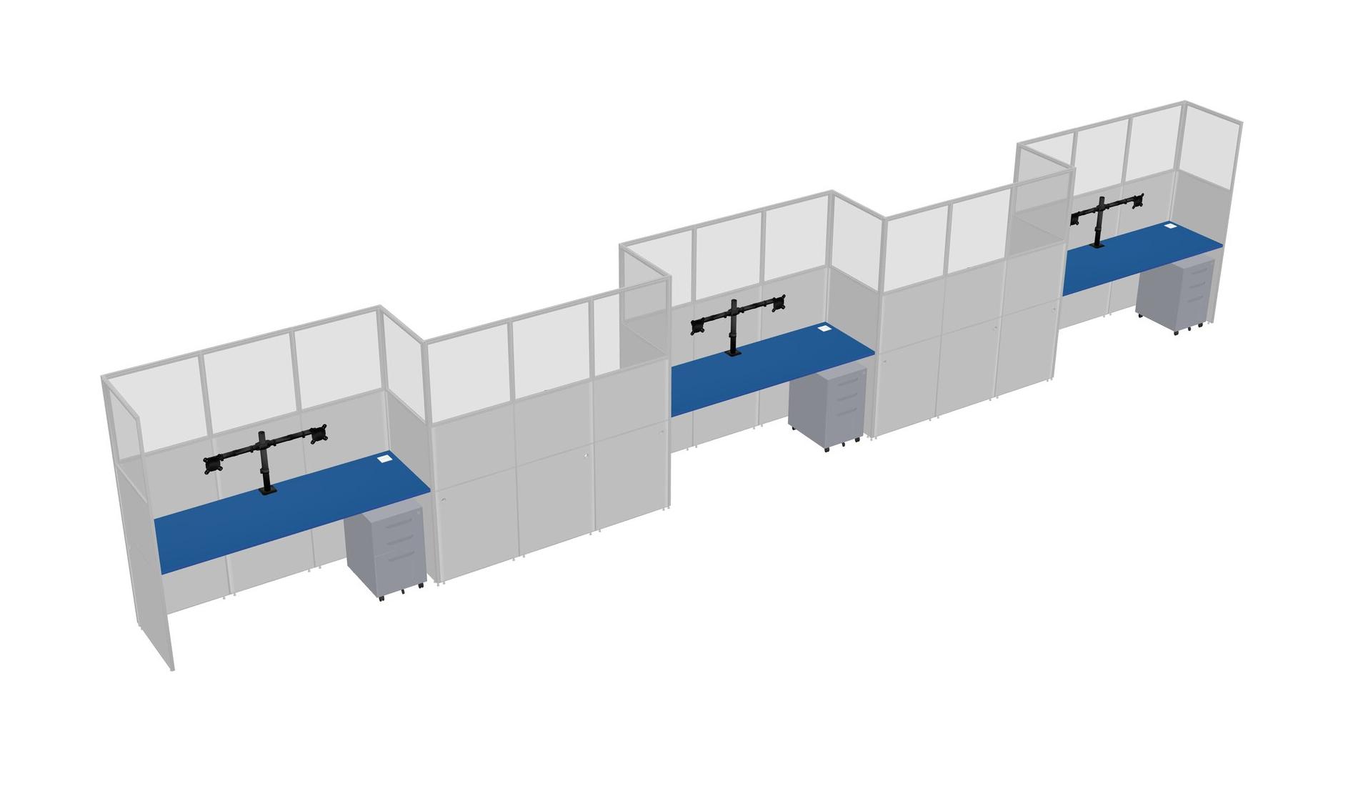 Prism Blue Rectangular Cubicle Workstations For 5 - Zigzag Formation + Grey Metal Mobile Drawers
