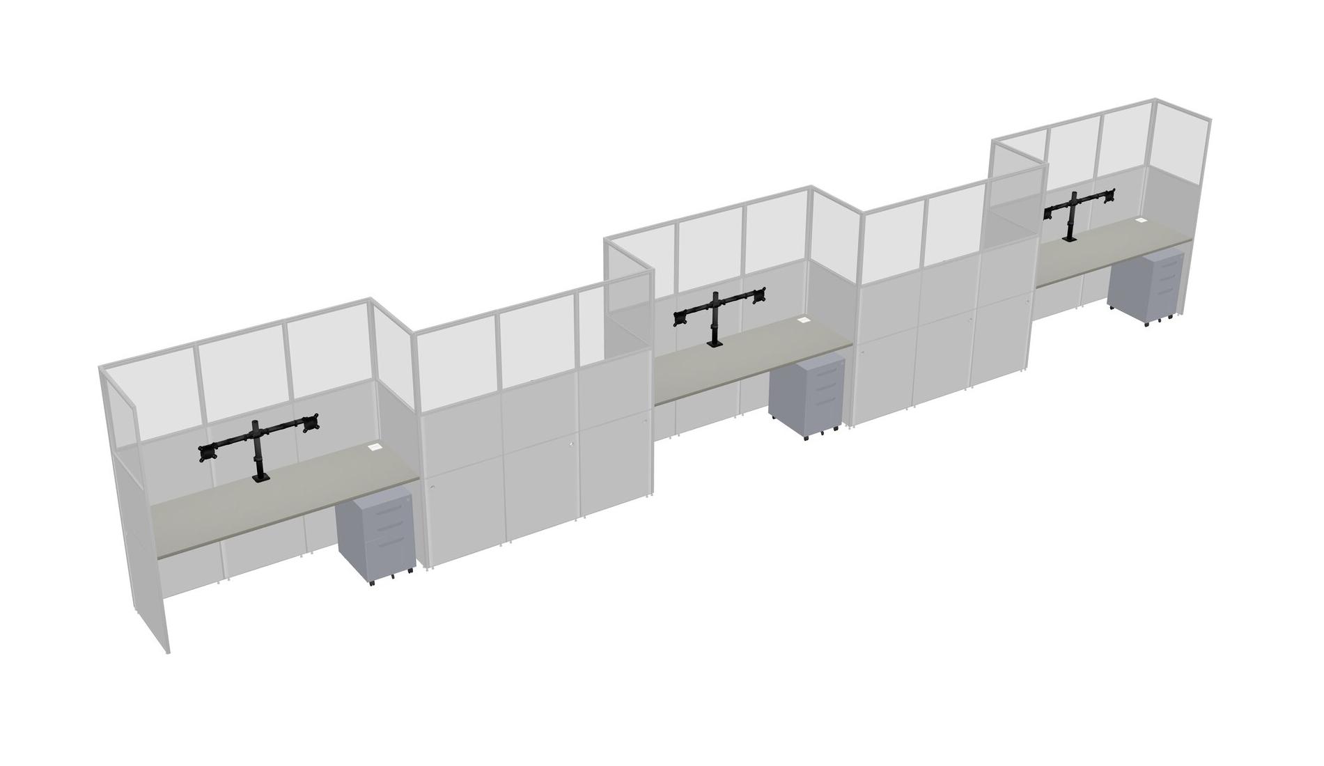 Grey Shadows Rectangular Cubicle Workstations For 5 - Zigzag Formation + Grey Metal Mobile Drawers