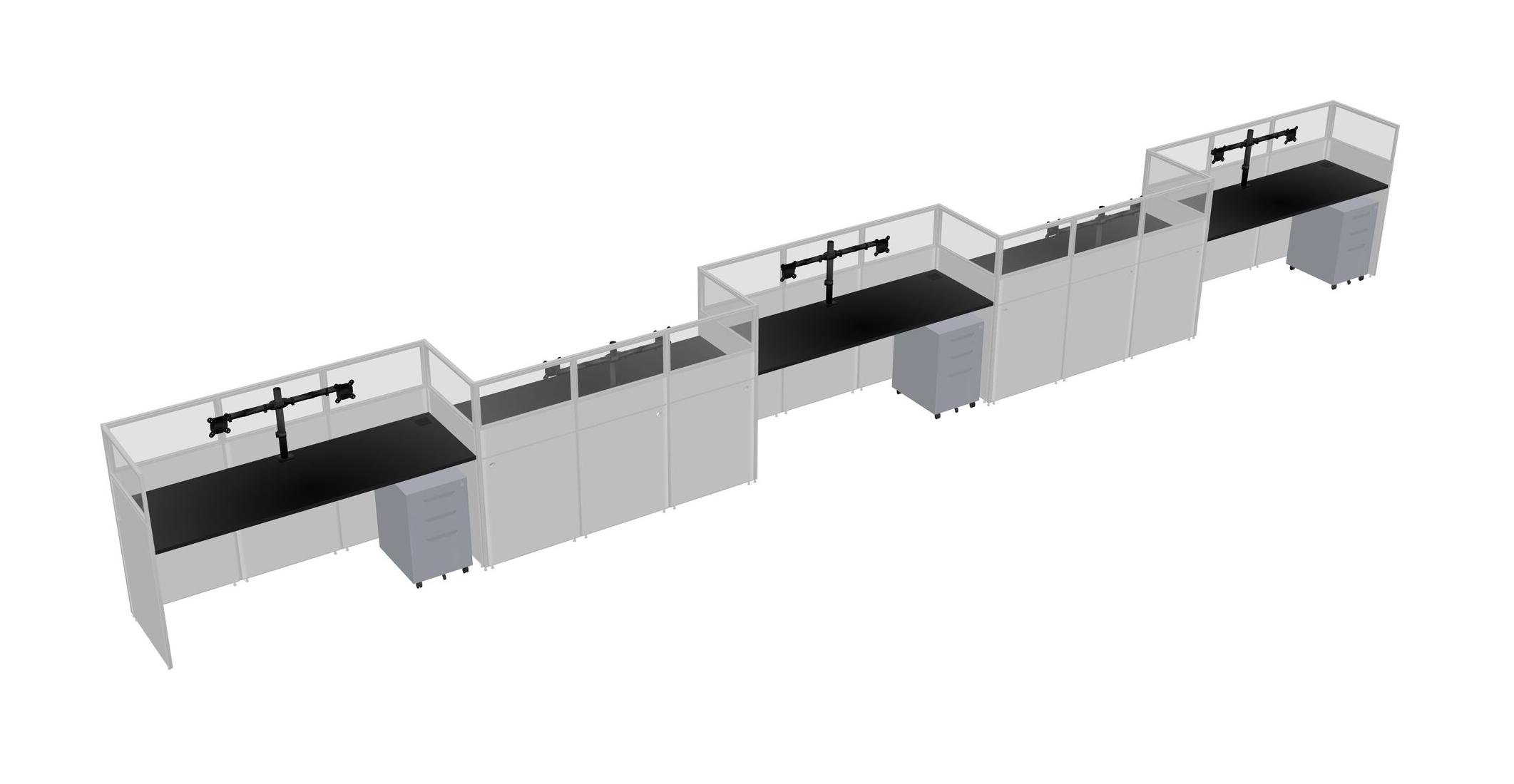 Black Rectangular Cubicle Workstations For 5 - Zigzag Formation + Grey Metal Mobile Drawers