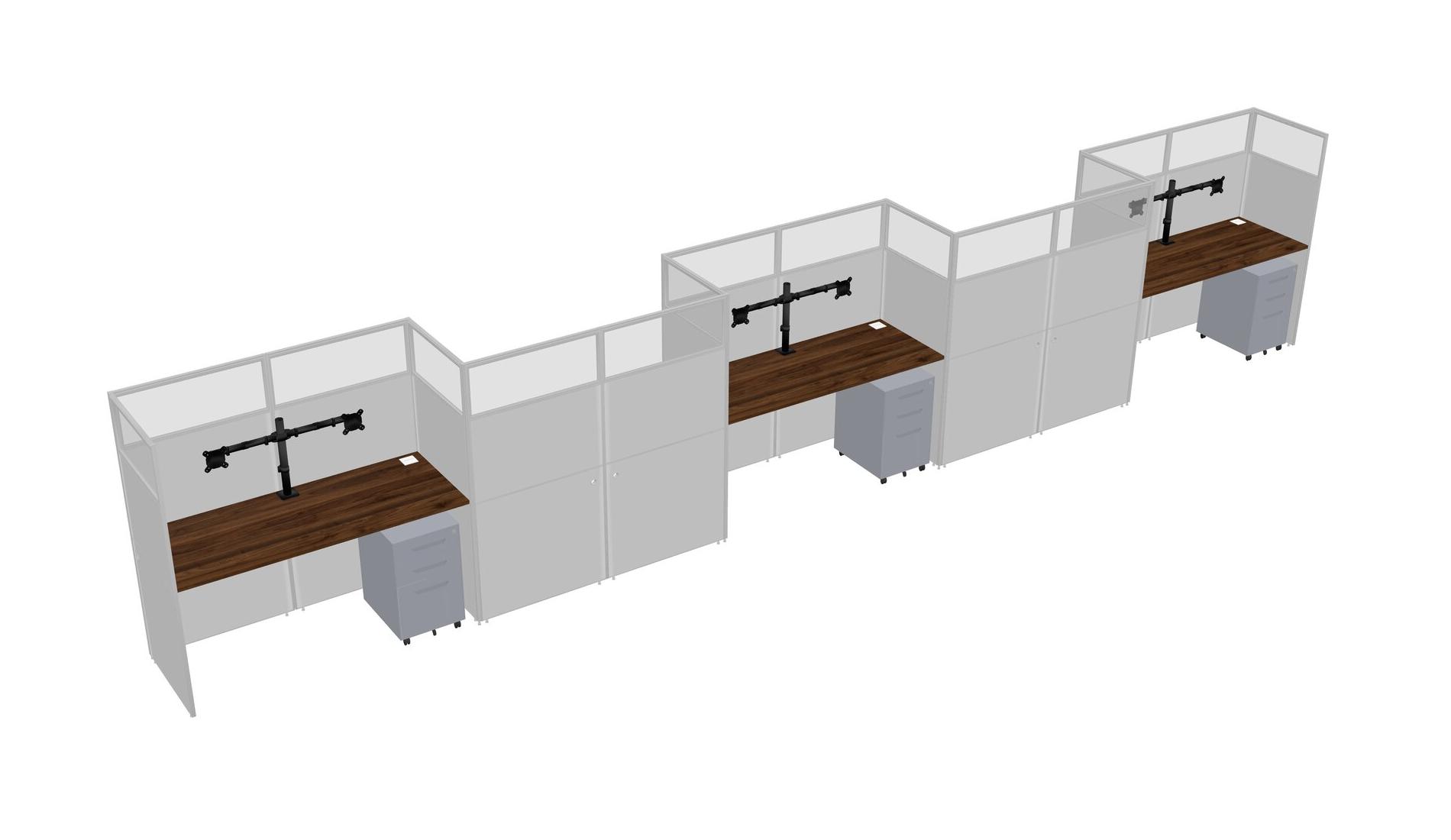 Columbia Walnut Rectangular Cubicle Workstations For 5 - Zigzag Formation + Grey Metal Mobile Drawers