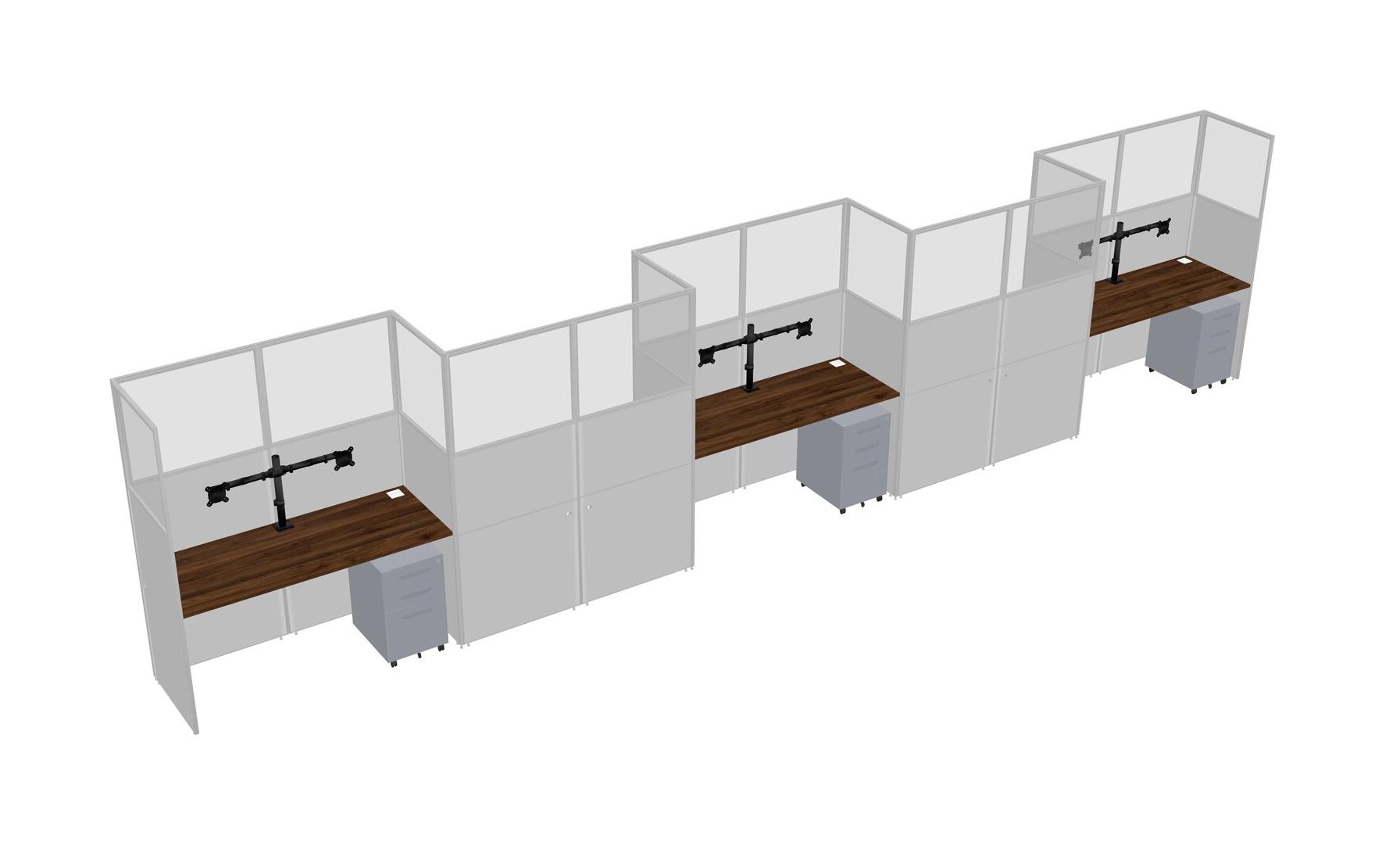 Columbia Walnut Rectangular Cubicle Workstations For 5 - Zigzag Formation + Grey Metal Mobile Drawers