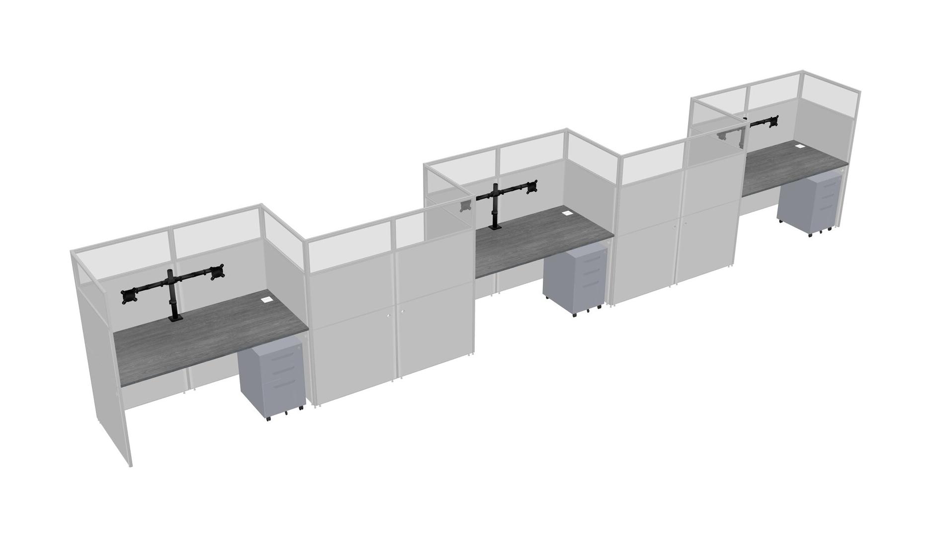 Grey Rectangular Cubicle Workstations For 5 - Zigzag Formation + Grey Metal Mobile Drawers