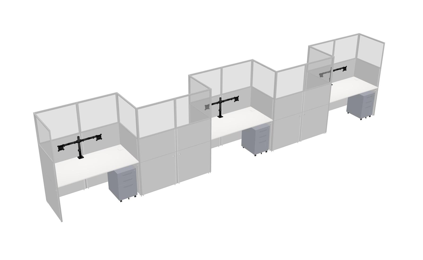 White Rectangular Cubicle Workstations For 5 - Zigzag Formation + Grey Metal Mobile Drawers