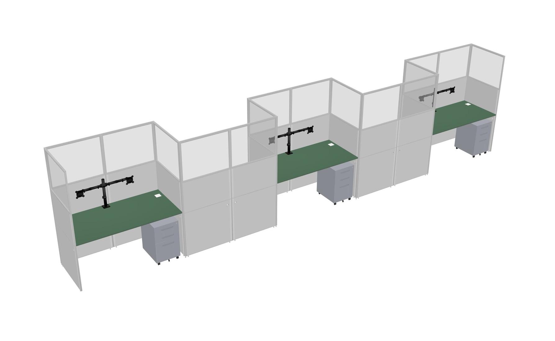 Green Rectangular Cubicle Workstations For 5 - Zigzag Formation + Grey Metal Mobile Drawers